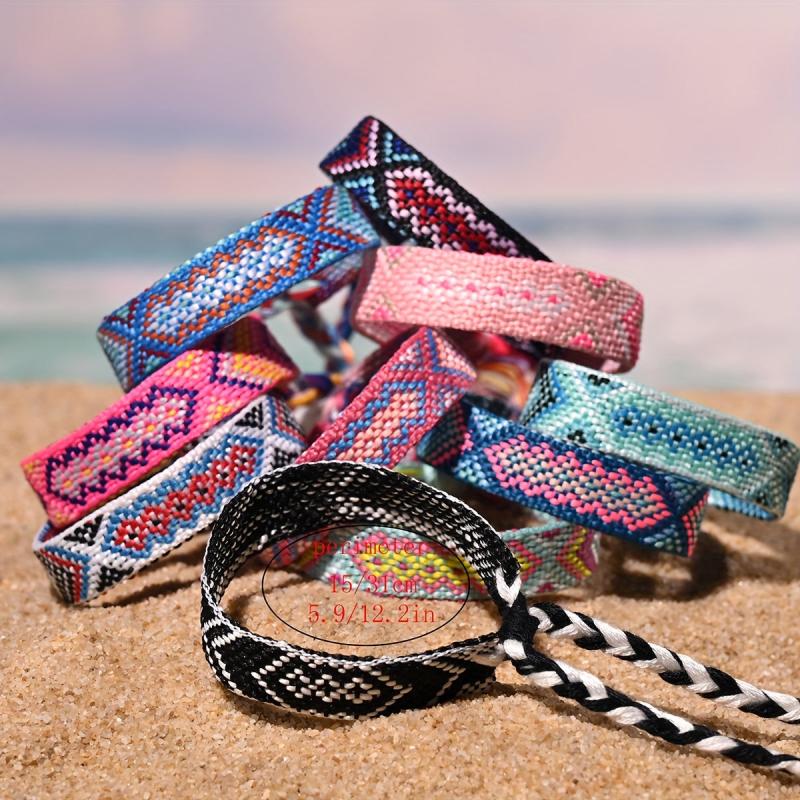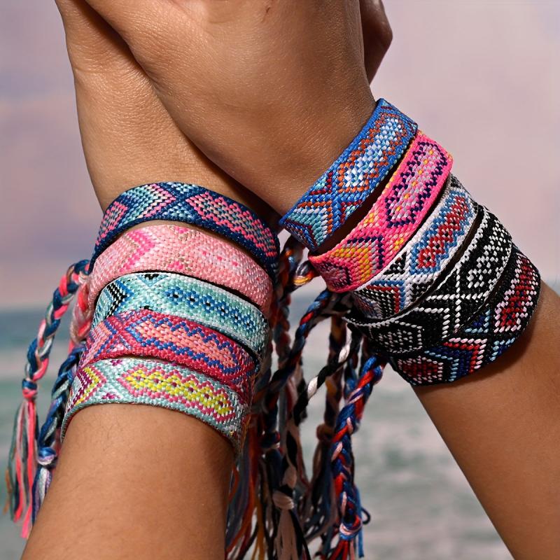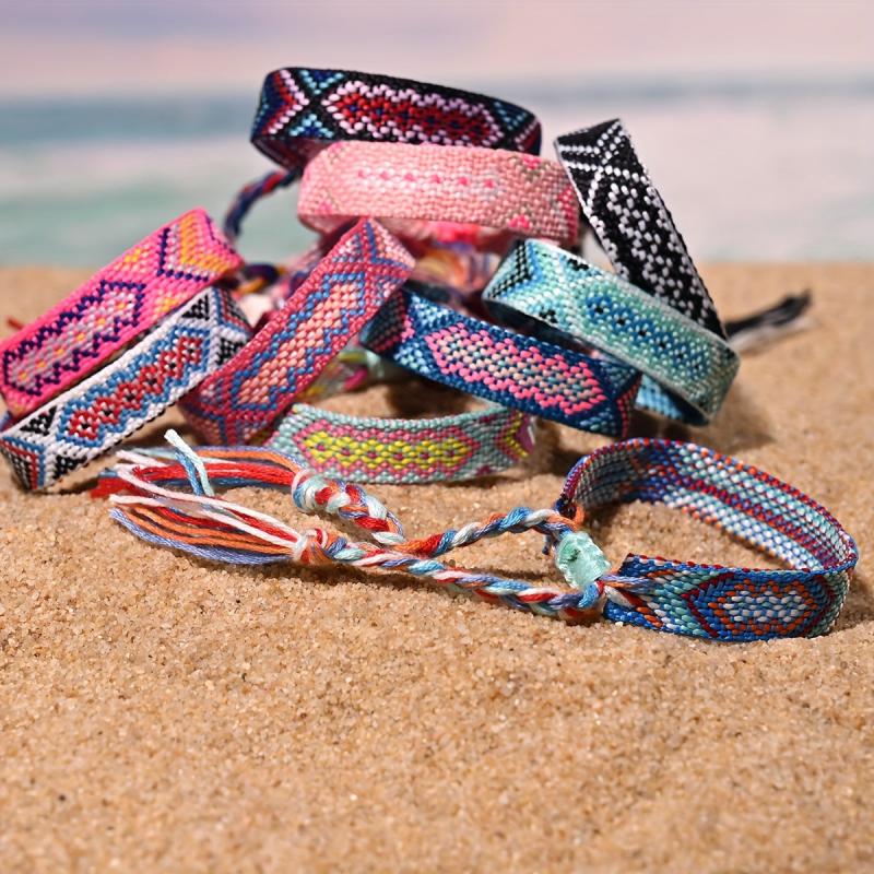 This pack contains 10 retro ethnic style friendship twist braided bracelets. Perfect for adding a touch of vintage charm to your outfit.