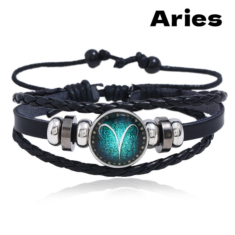 Add a celestial touch to your outfit with these woven bracelets featuring the 12 constellations. Crafted from PU leather, this accessory is both stylish and trendy.