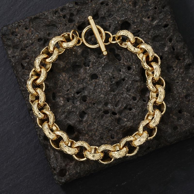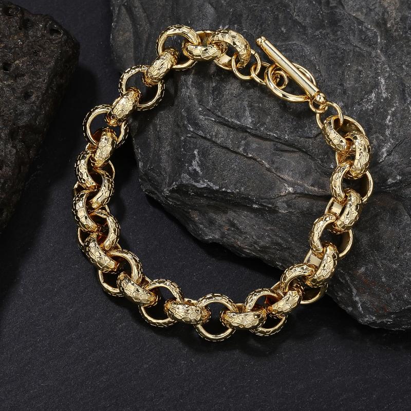 Elegant 12mm Copper 18K Plated Chain Bracelet with OT Clasp Circular Ring Pattern. Perfect for birthdays, holidays, and special occasions. Stylish and long-lasting.