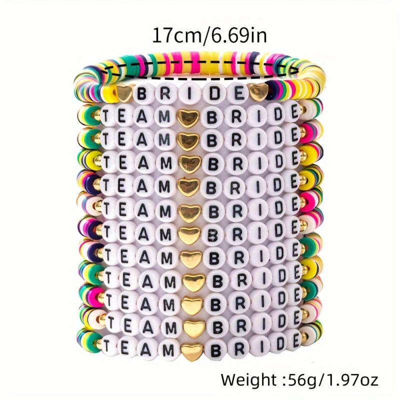 12-piece set of stylish elastic bracelets featuring layered 'TEAM BRIDE' letter design. Perfect for bachelorette parties and bridal events.