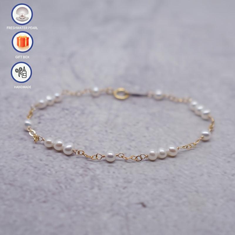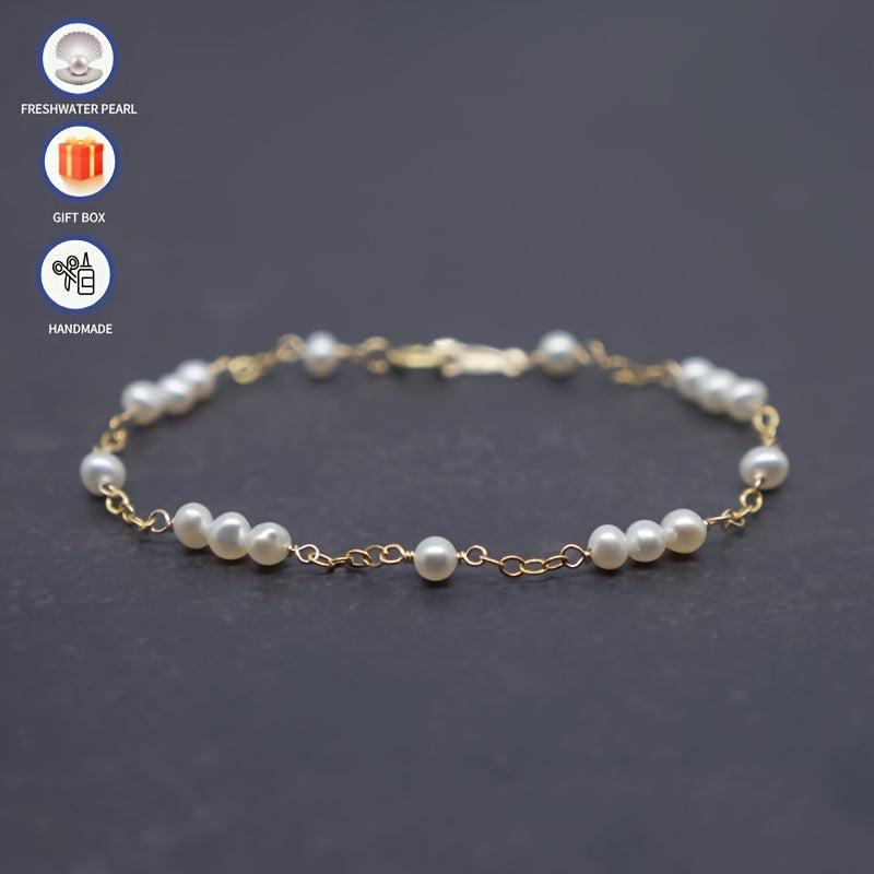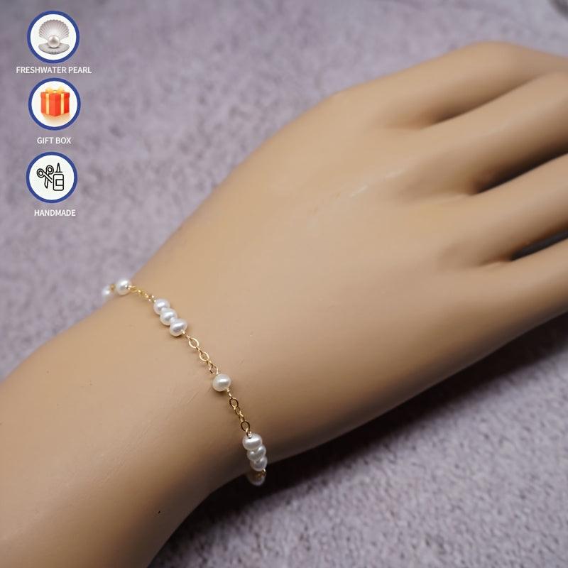 Elegant freshwater pearl bracelet with golden beads, perfect for daily wear or special occasions. Ideal Valentine's gift for your loved one.