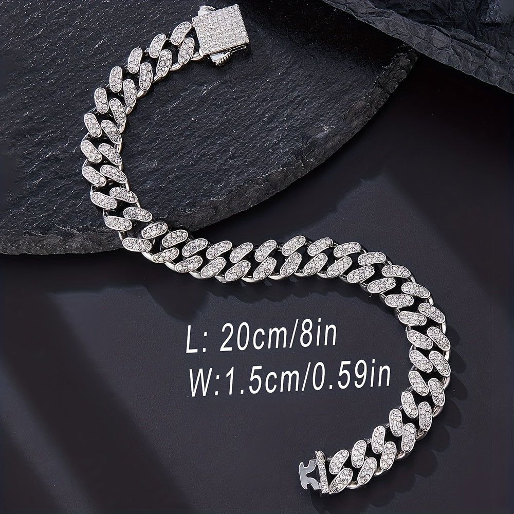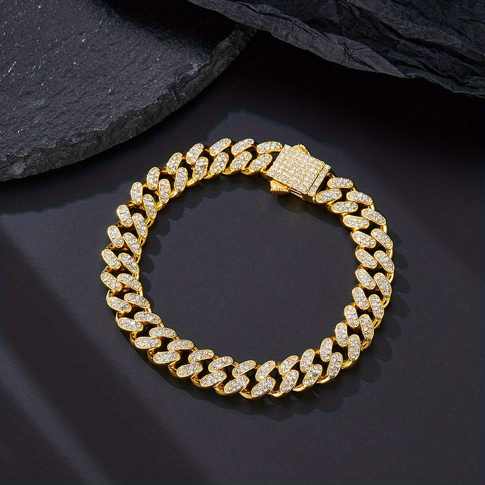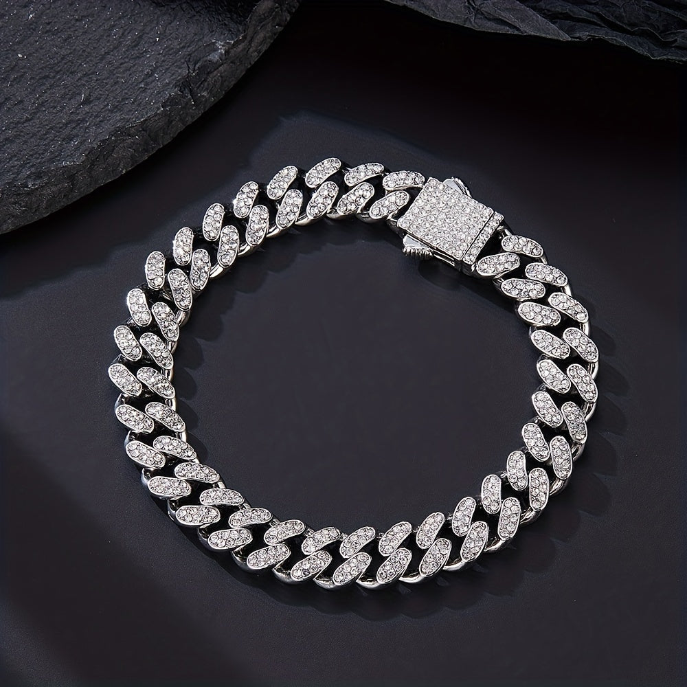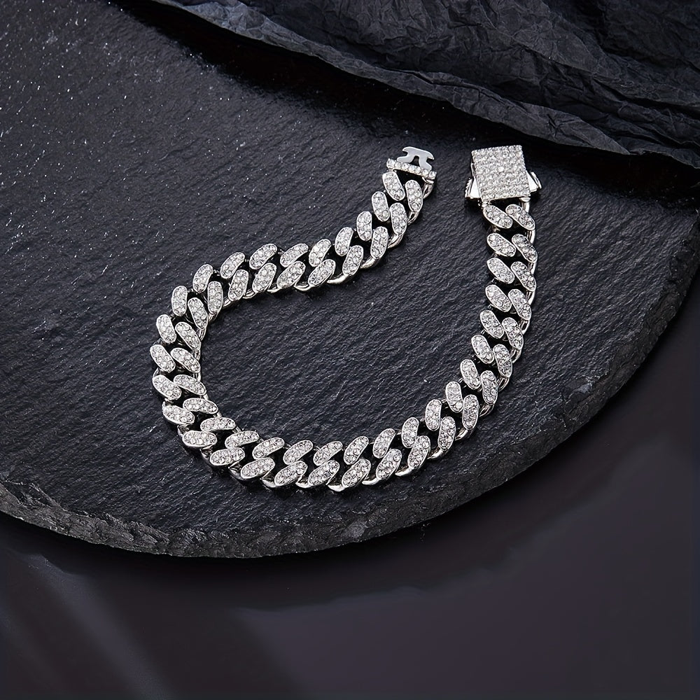 Elevate your style with this full rhinestone Cuban chain bracelet, a hot-selling hiphop accessory that adds flair to any outfit.