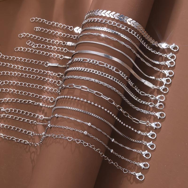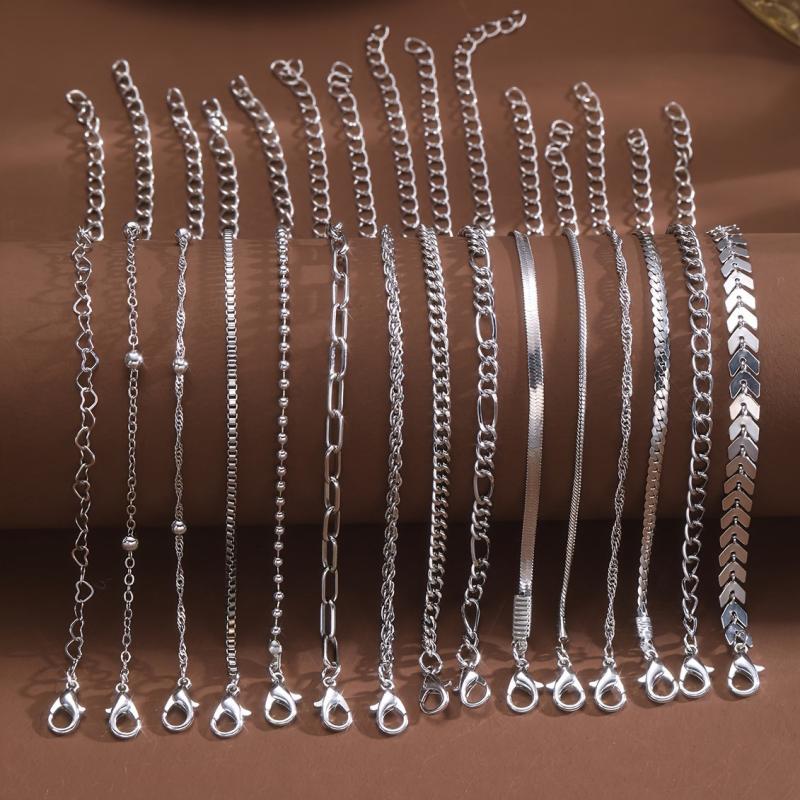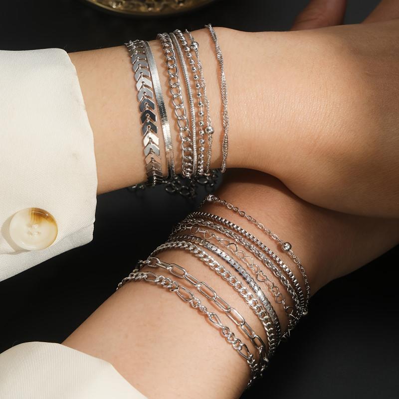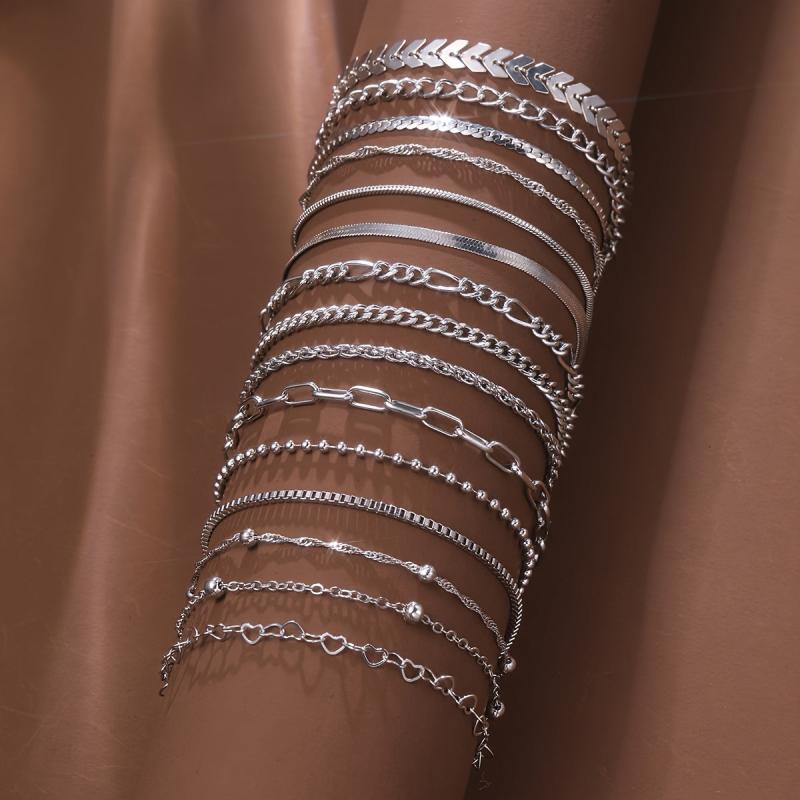 Enhance your everyday look with this 15-piece bracelet set featuring a silvery finish. Perfect for daily wear and stylish outings.