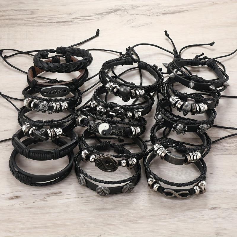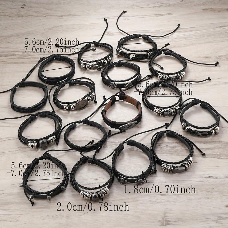 Add a touch of personality to your outfit with this set of 16 vintage faux leather woven bracelets. Perfect for daily wear or parties, these bracelets make a great gift for men.