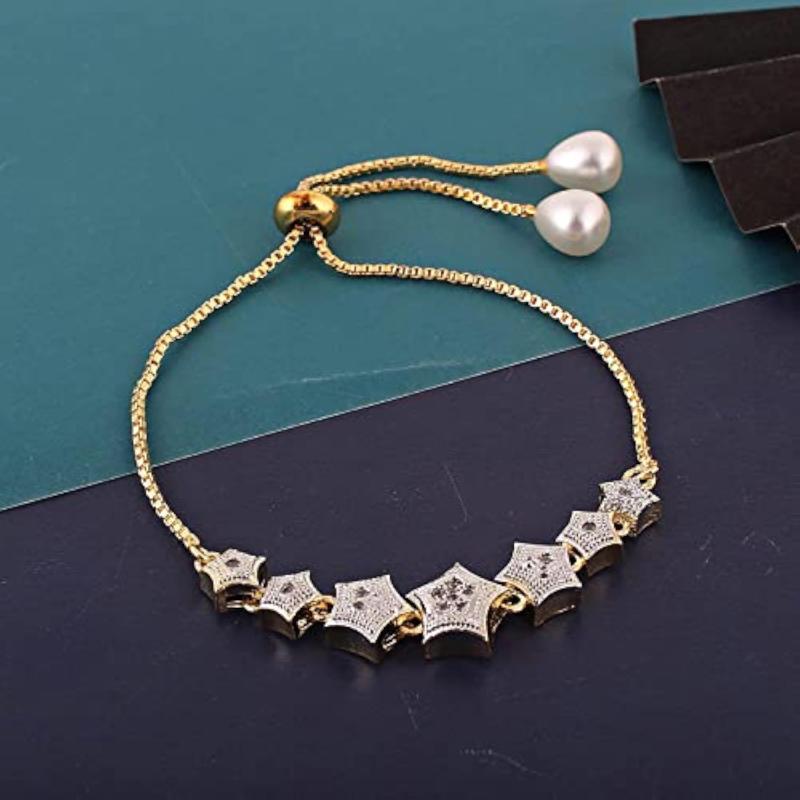 Elegant 18K gold plated bracelet with American Diamond stones for a stunning look.