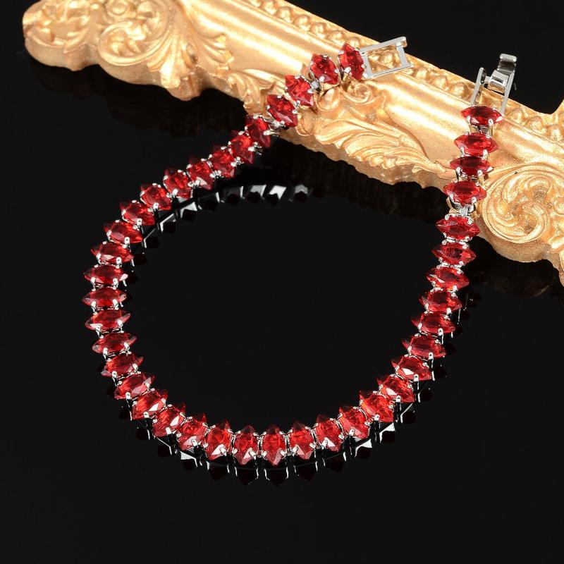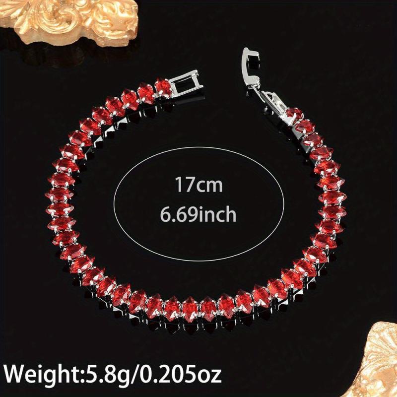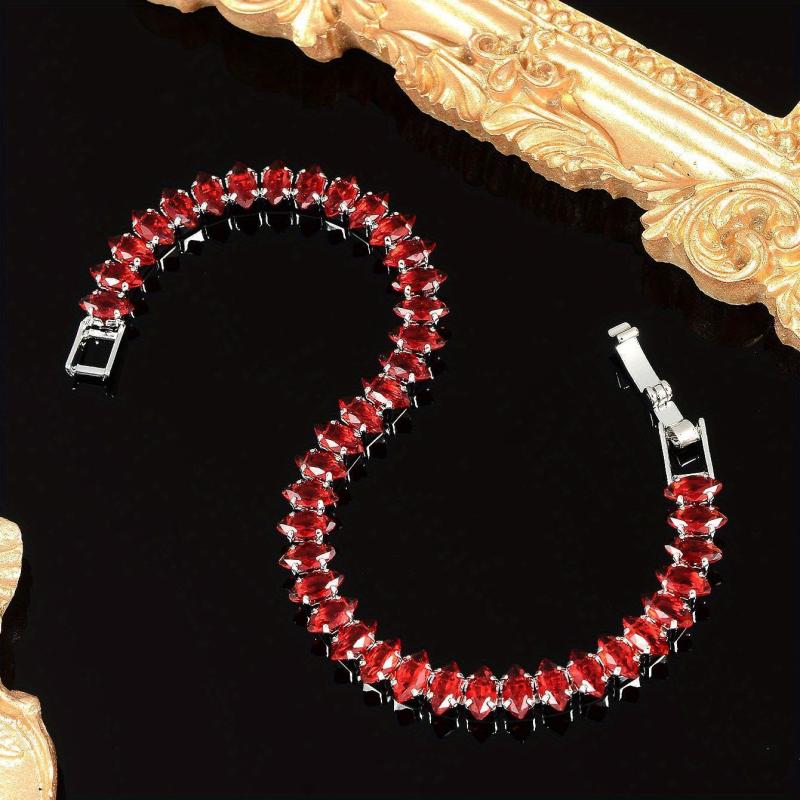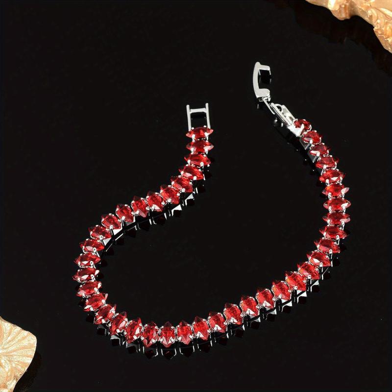 Elevate your look with this stunning bracelet featuring red cubic zirconia beads. Perfect for daily wear or special occasions, this durable accessory adds a touch of glam to any outfit.