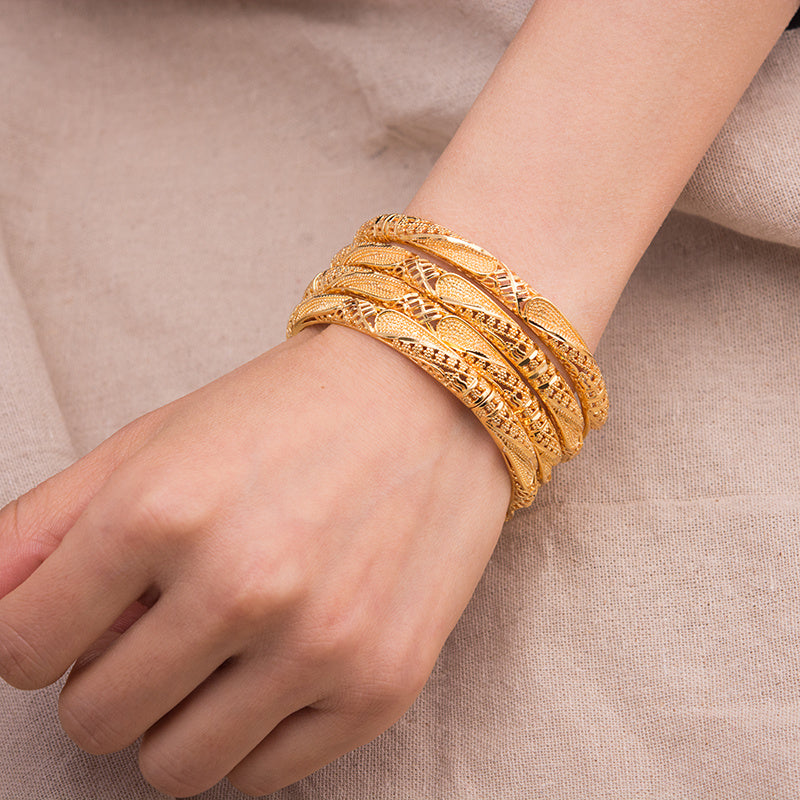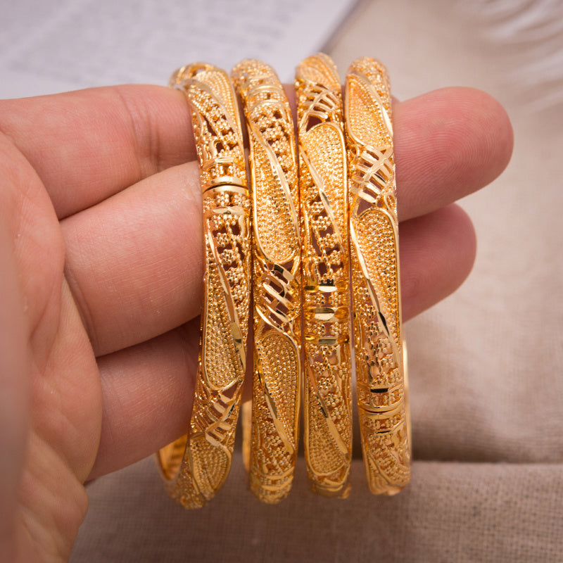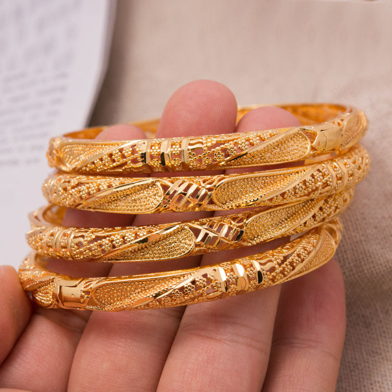 These elegant bangles are perfect for weddings and special occasions. Made with high-quality 18K gold plating, they add a touch of glamour to any outfit.