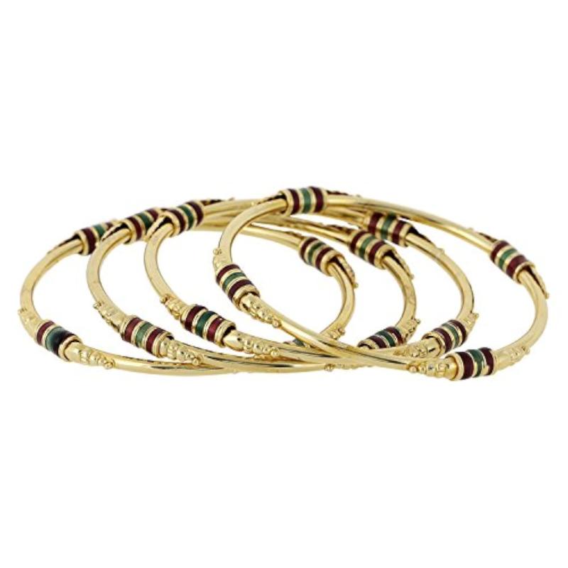 Elevate your style with this plated 1g traditional set of 4 ethnic colourful bangles. Perfect for adding a pop of color to any outfit.