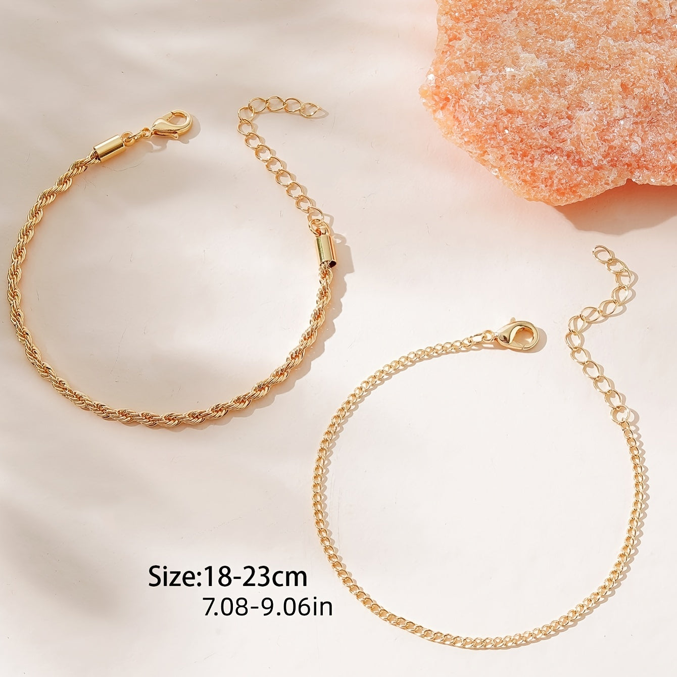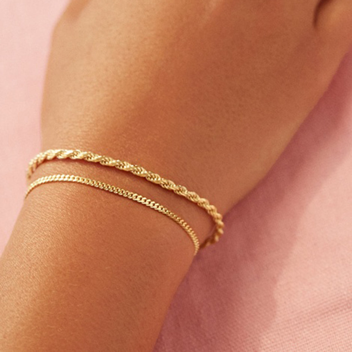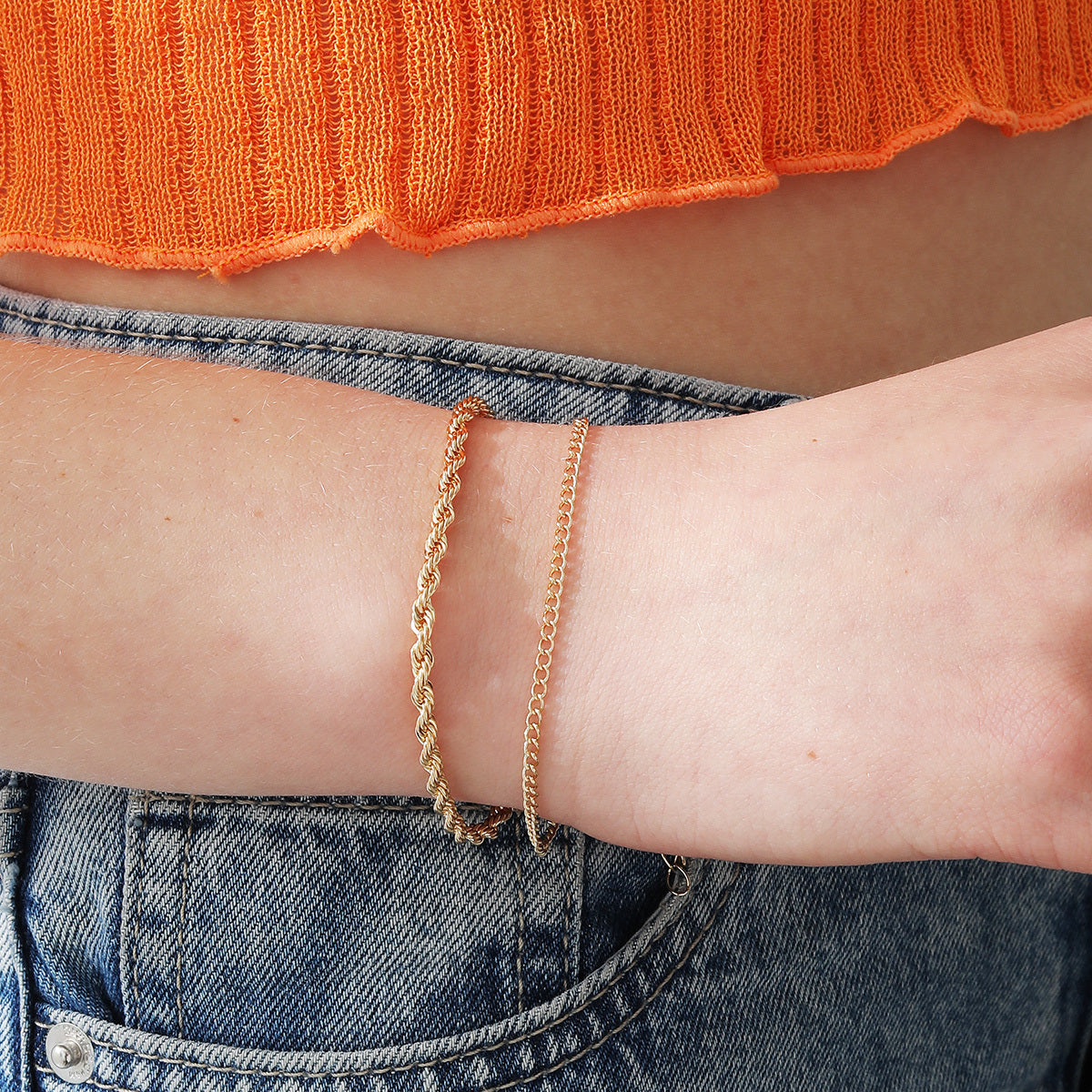Add a touch of elegance to your look with these stackable chain bracelets. Made of copper and plated in 14K gold, these dainty bracelets are perfect for everyday wear or special occasions.