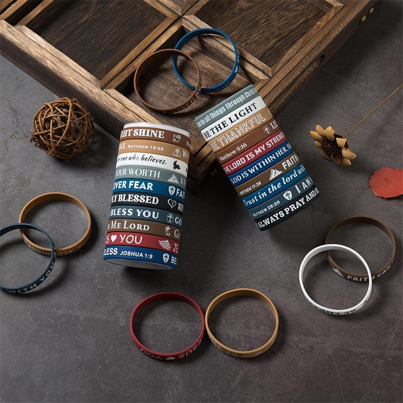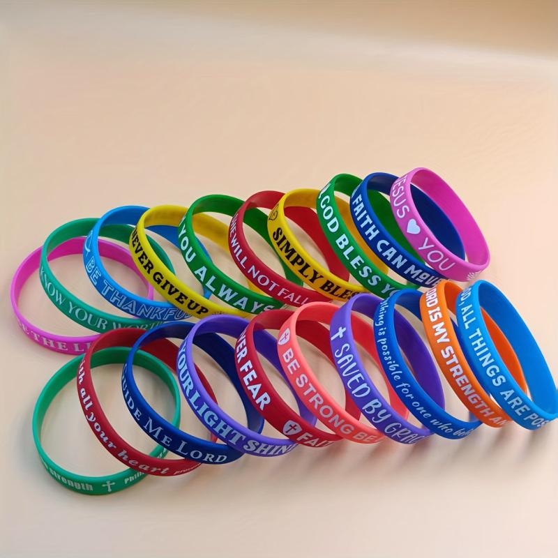Add a touch of inspiration to your day with these Bible verse silicone bracelets. They are comfortable and lightweight, perfect for daily wear.