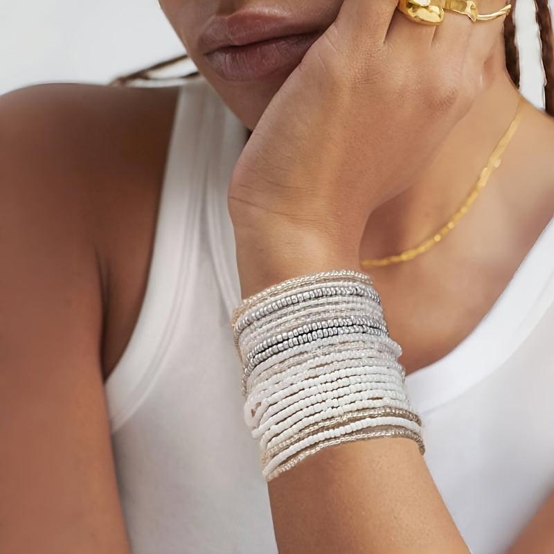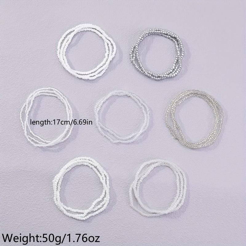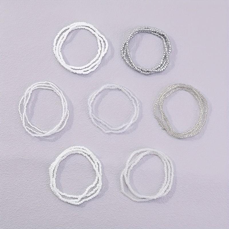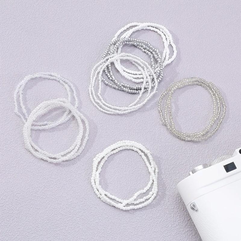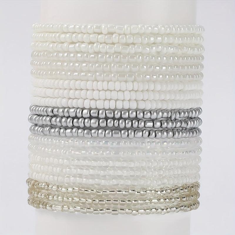 Embrace the casual bohemian style with this set of 20 rice bead elastic bracelets, perfect for adding a touch of friendship to your look.