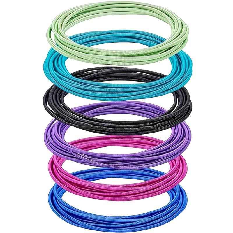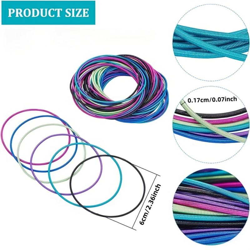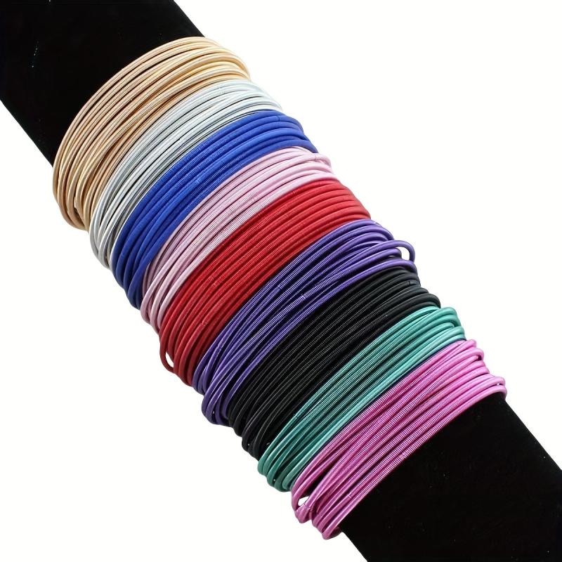 Add a pop of bohemian style to your look with this set of 20 colorful guitar string bracelets. Made with elastic bands for a comfortable fit.