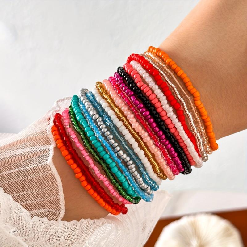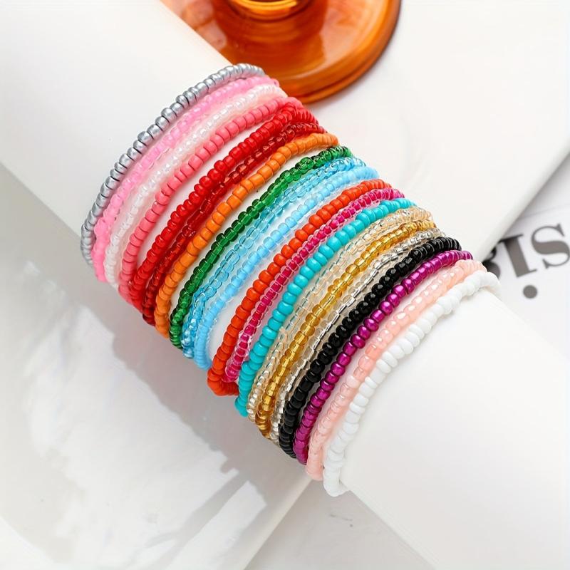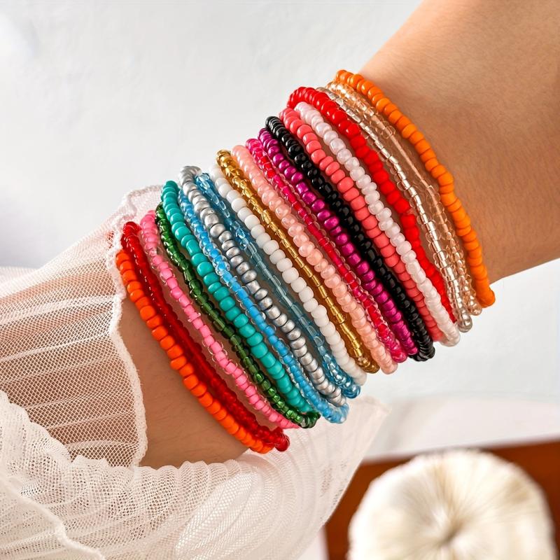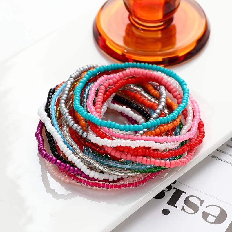 Get ready for your holiday with this versatile set of 20 glass bead bracelets. Each bracelet features vibrant colors and holiday-themed designs. Perfect for the beach or a music festival!