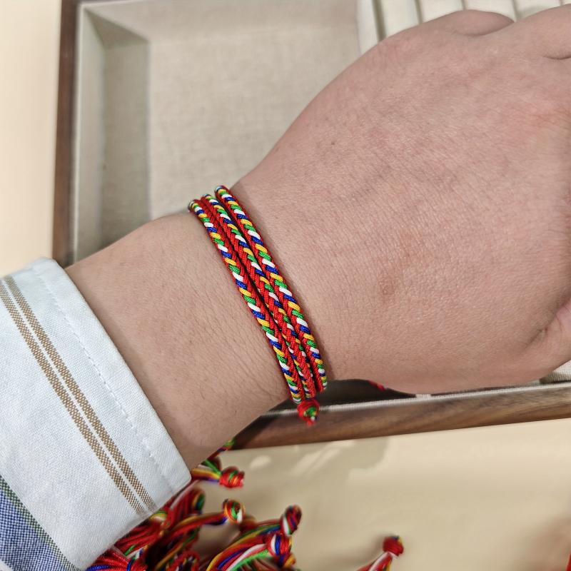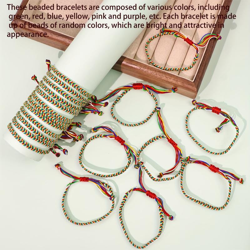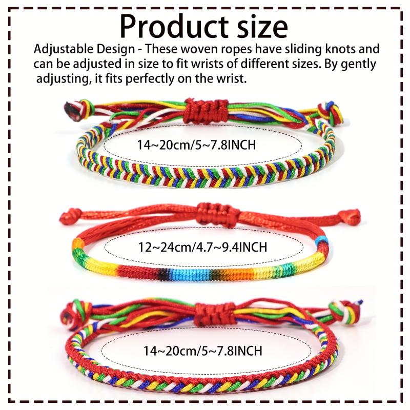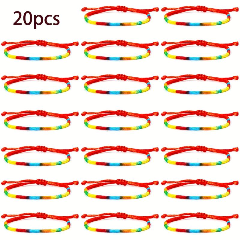 Add a pop of color to your look with these hand-woven friendship bracelets. They are elastic, adjustable, and feature vibrant rainbow colors with a cute tassel charm. Perfect for Christmas party favors or casual attire.