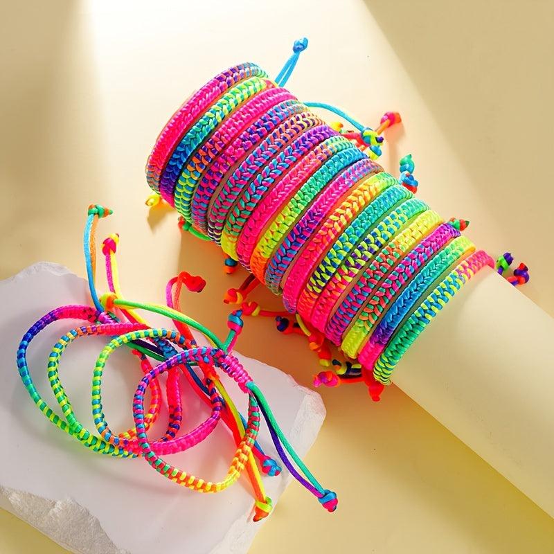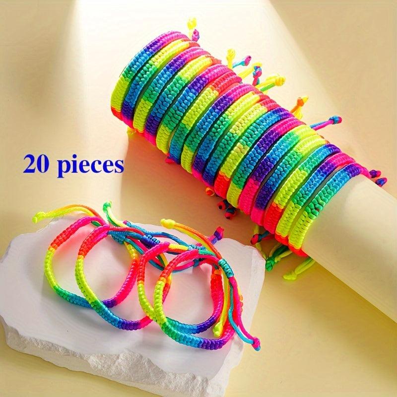 This set includes 20 hand-woven rope bracelets in rainbow gradient colors. These bracelets are adjustable in size and perfect for both male and female friends. Share the rainbow love with this friendship bracelet set!