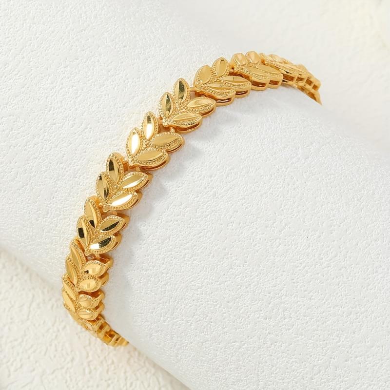 Stunning 24K gold plated copper bracelet with wheat sheaf design. This adjustable open cuff is ideal for weddings and all-season wear. Makes a perfect gift.