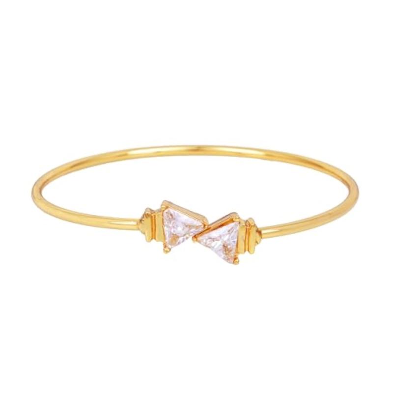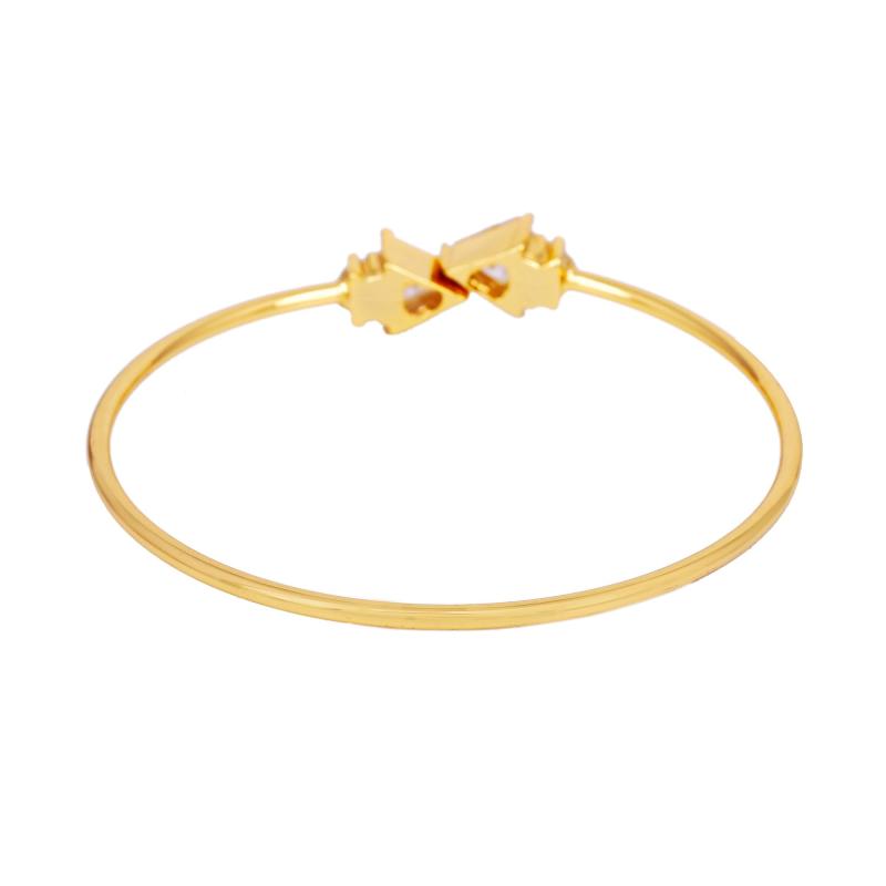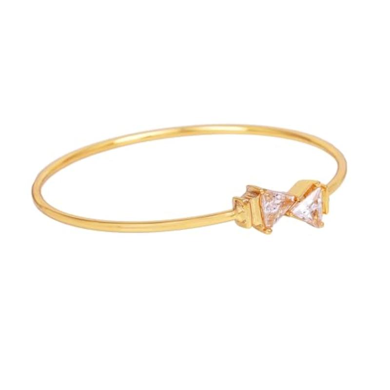 Add a touch of sparkle to your Valentine's Day look with this elegant 24Kt plated cuff bracelet featuring trillium crystals. A perfect gift for your loved one!