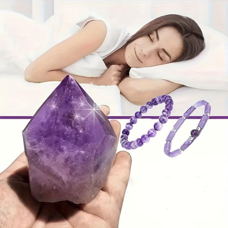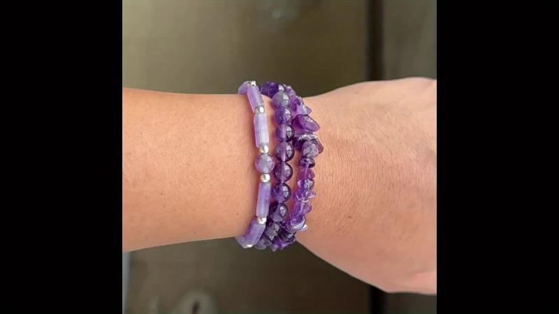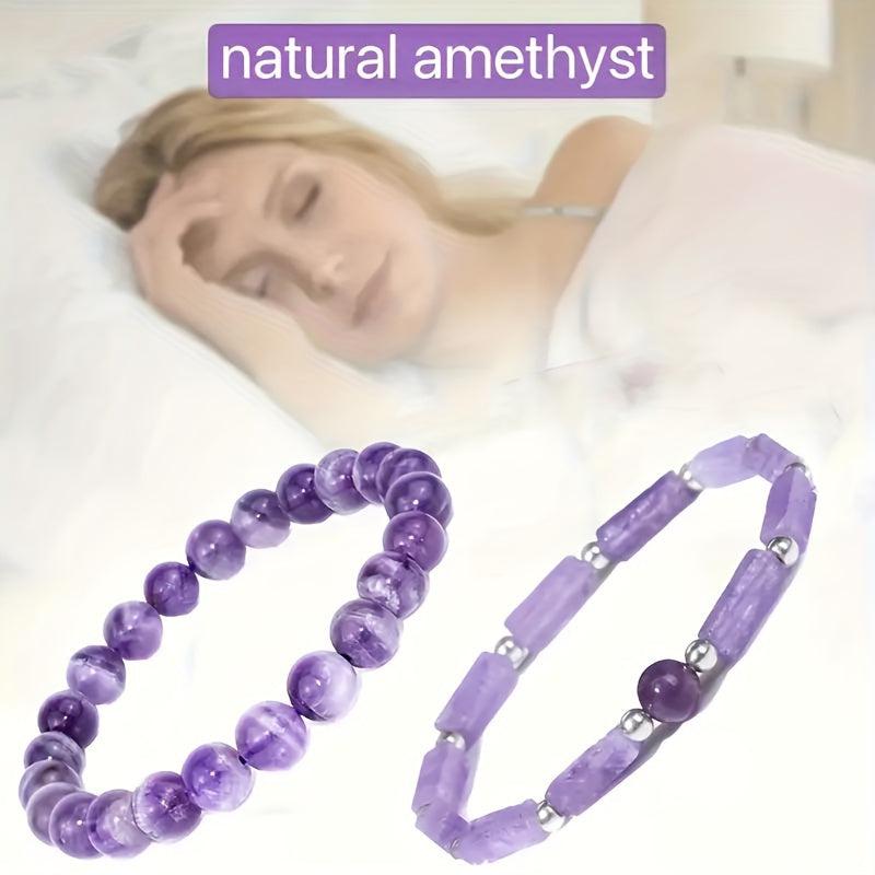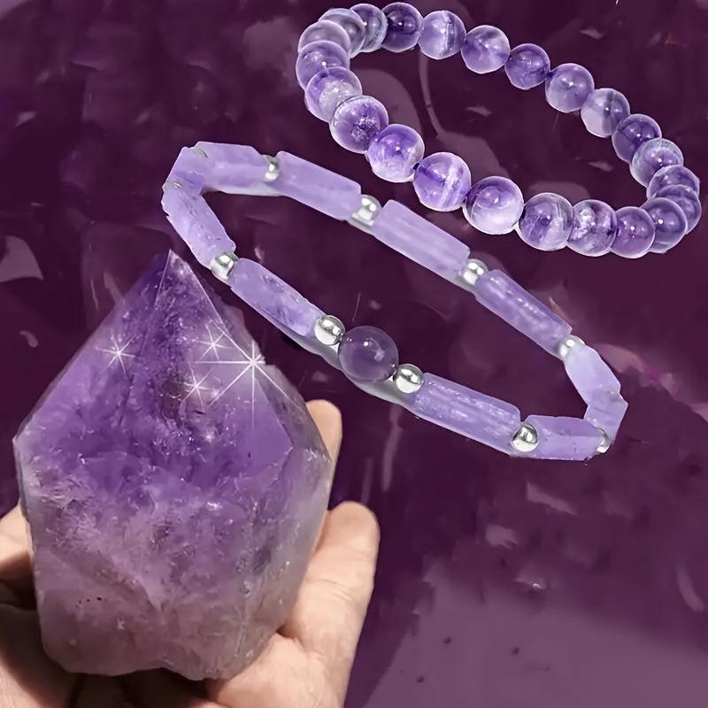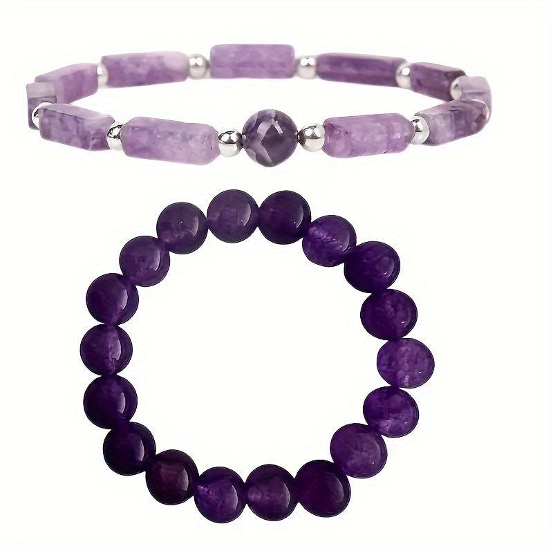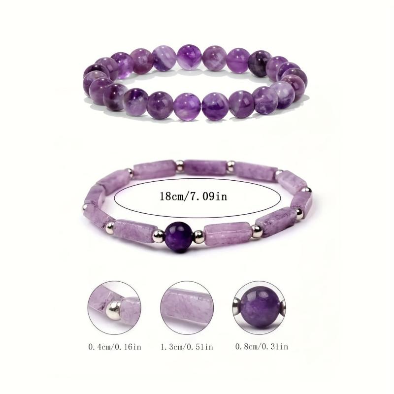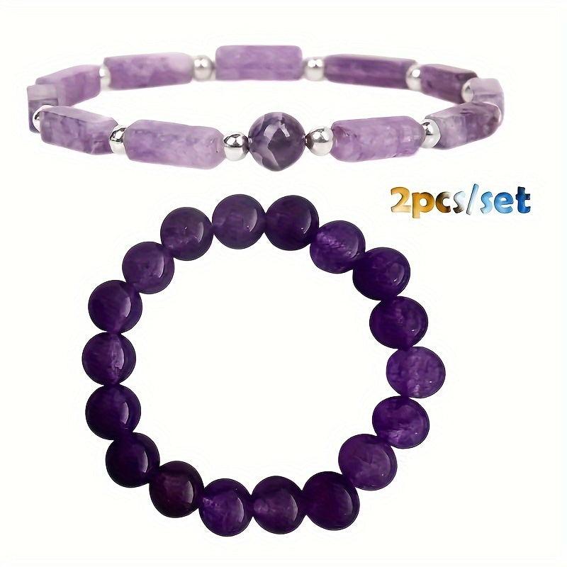 This set includes 2 natural stone amethyst bracelets, perfect for a bohemian style. Ideal gift for Mother's Day or any special occasion.