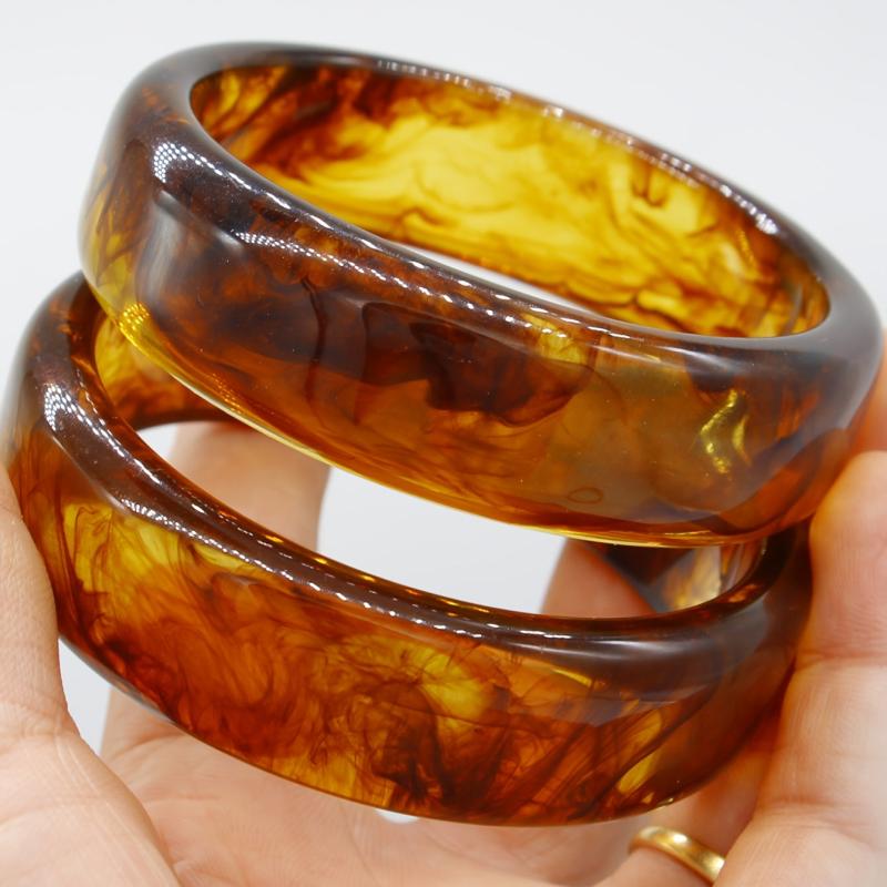 These 2 textured resin bracelets are perfect for daily wear or festive occasions. The coffee brown color adds a touch of bohemian flair to your outfit.