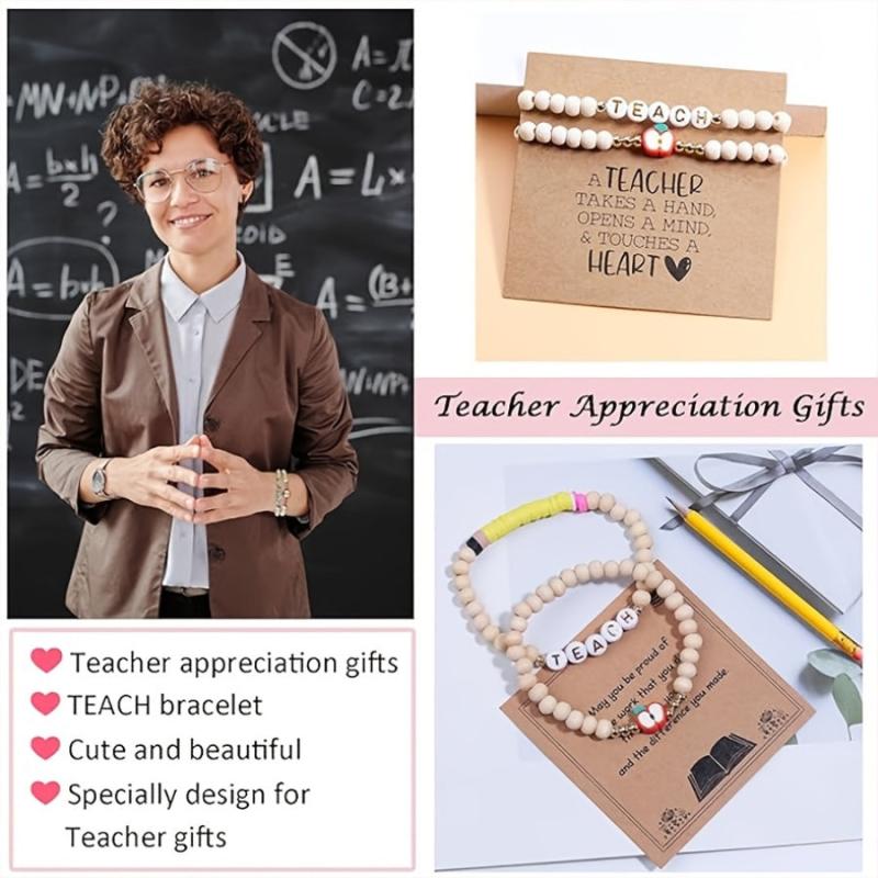 Show your appreciation to a special teacher with this set of 2 Boho style bracelets featuring an inspirational TEACH charm. Perfect gift for teachers.