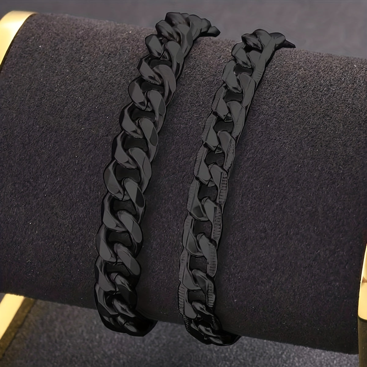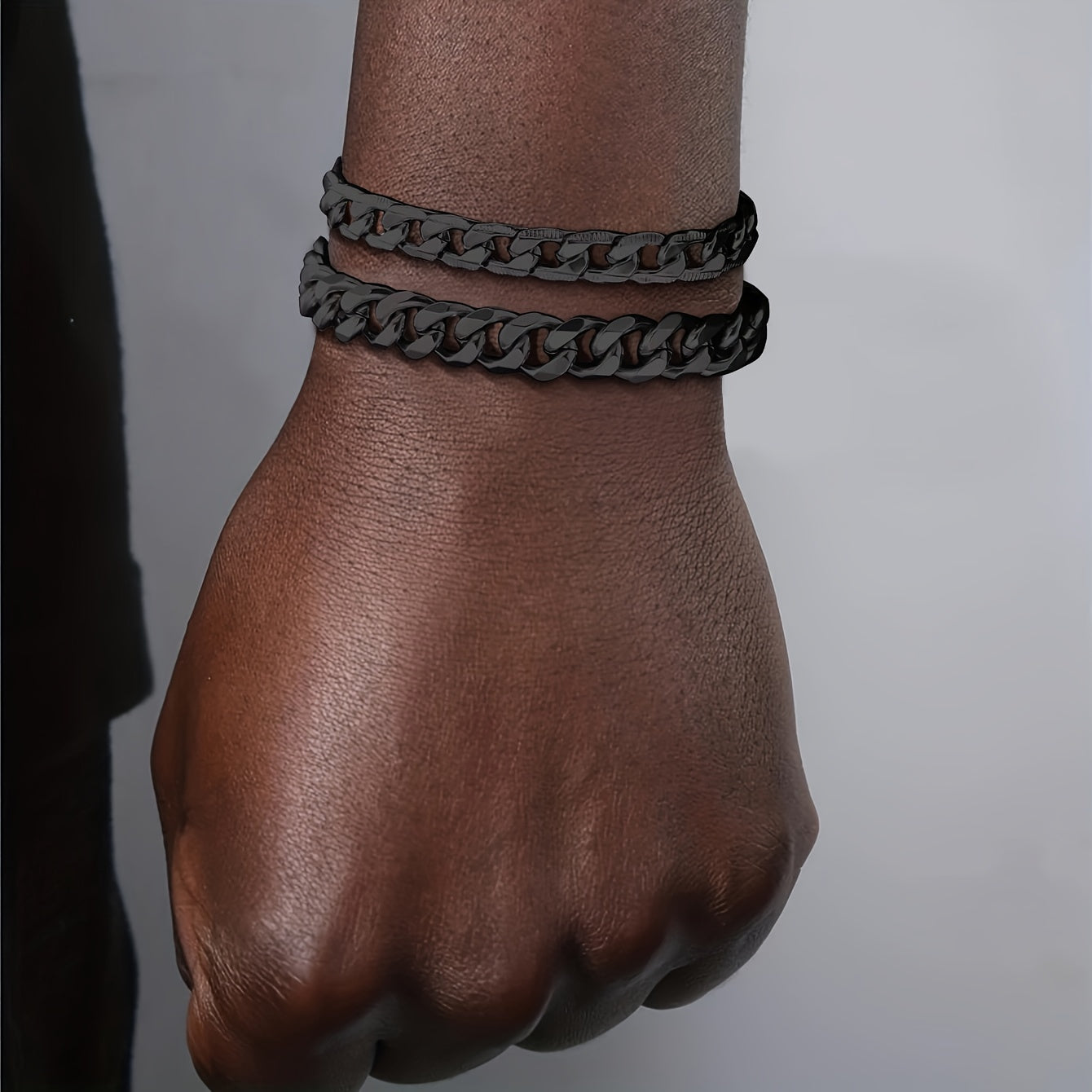 This set includes 2 Cuban stainless steel bracelet chains suitable for both men and women. Made of high-quality stainless steel, these chains are durable and stylish, perfect for everyday wear.
