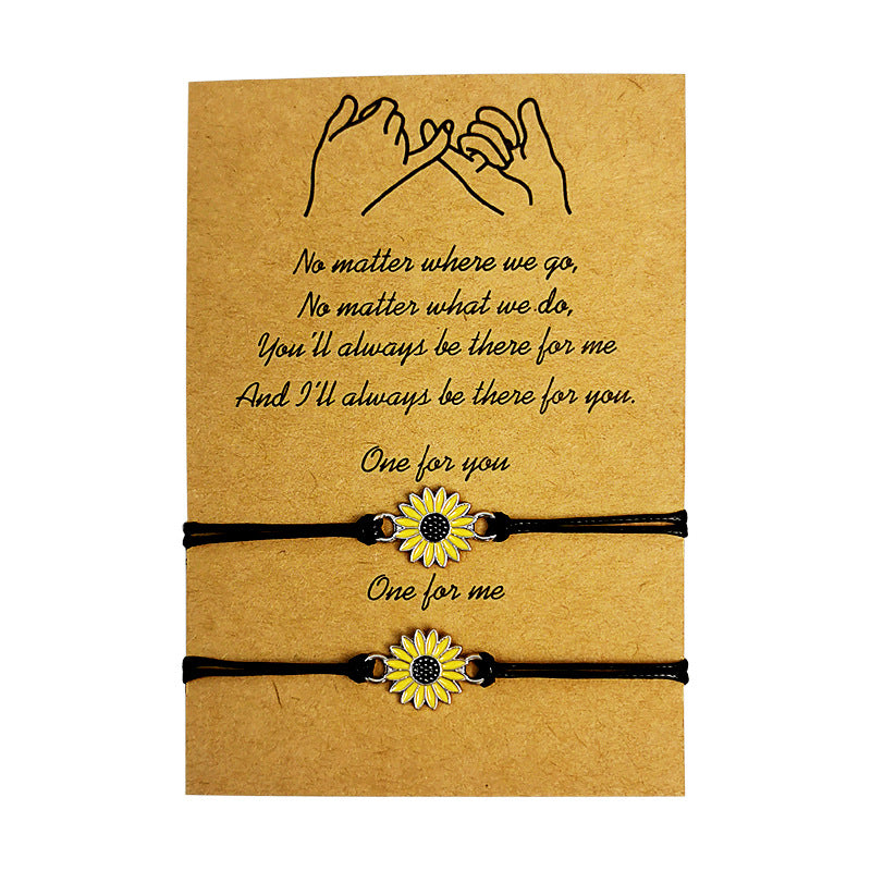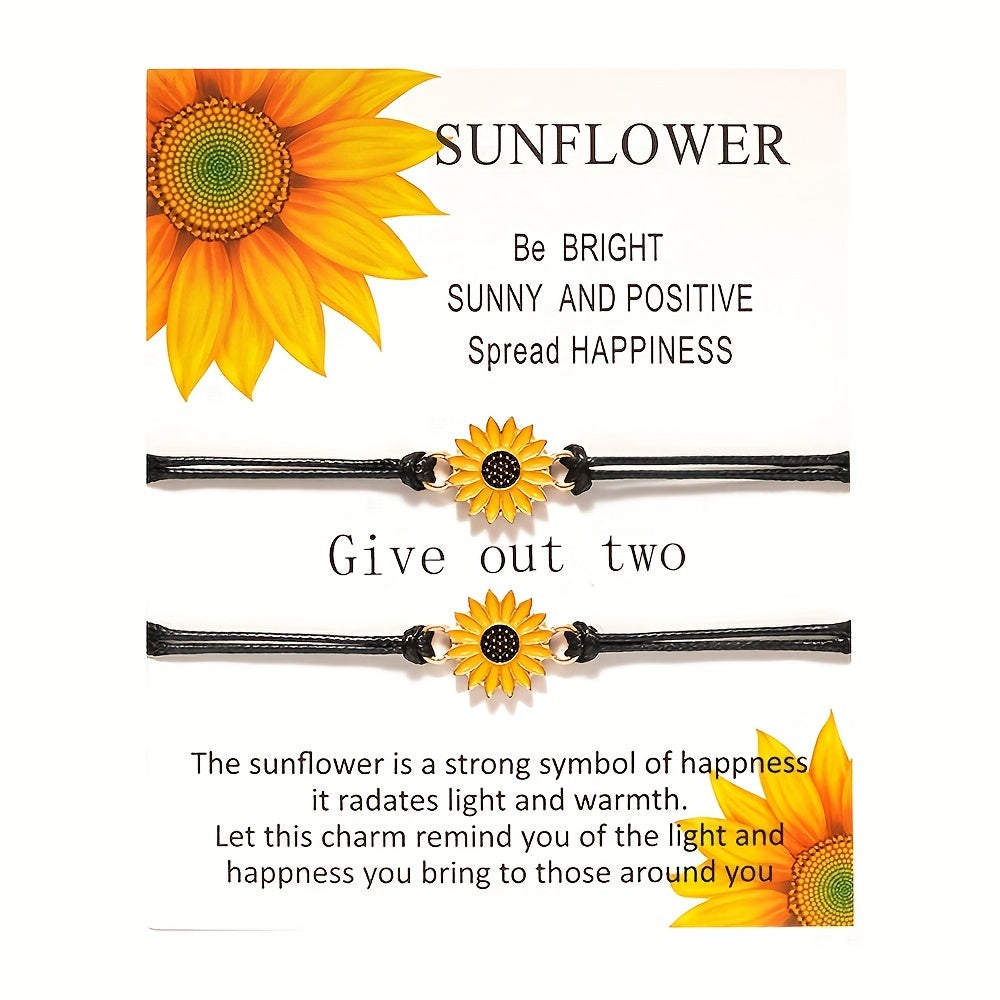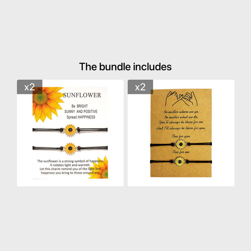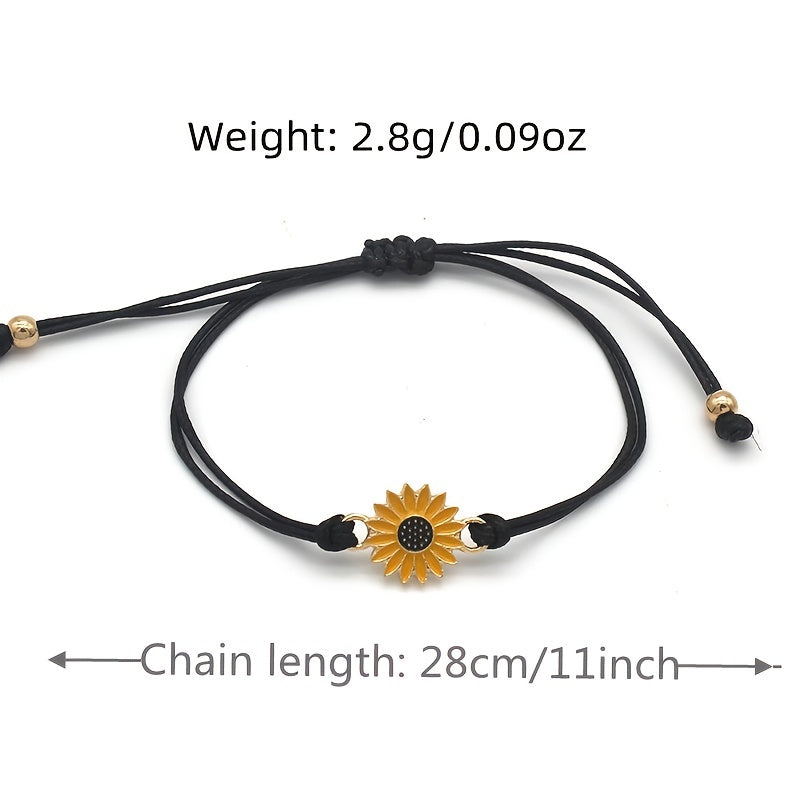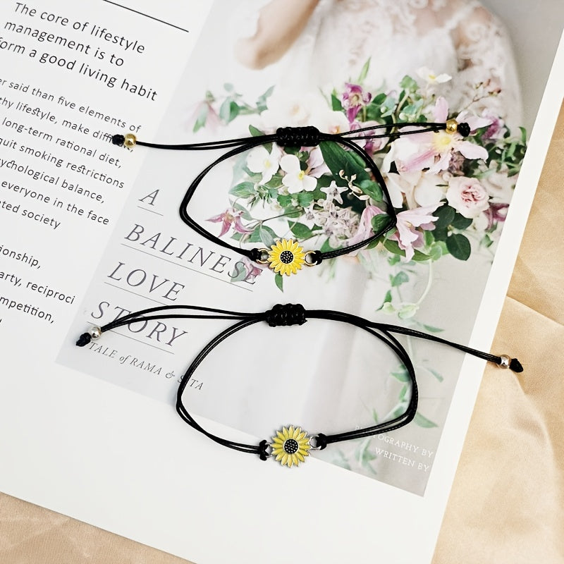 This set includes 2 funky braided rope bracelets adorned with daisy and sunflower charms. Perfect for couples or friends who want to show their fun and stylish side.