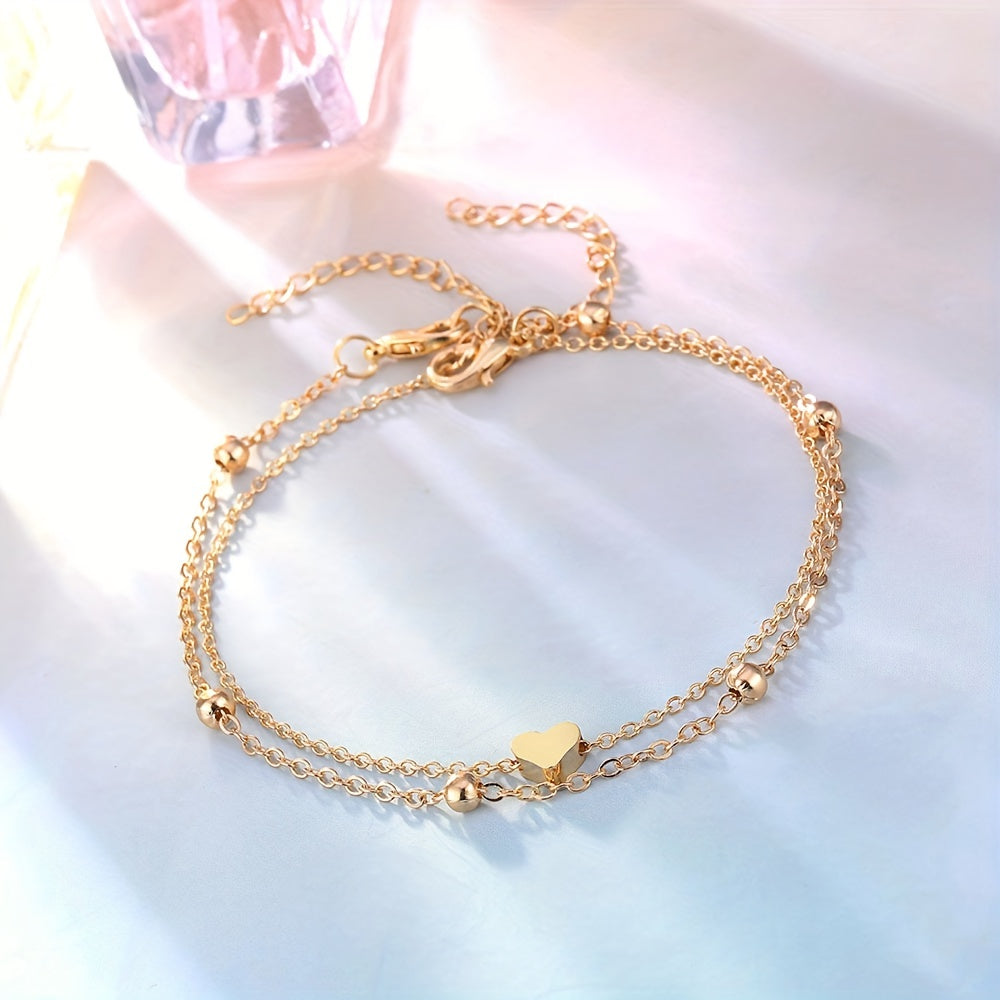 Add a touch of love to your ankles with this set of 2 mini love heart anklets. Made with a thin chain, these anklets are perfect for daily wear and add a minimalist charm to your look.