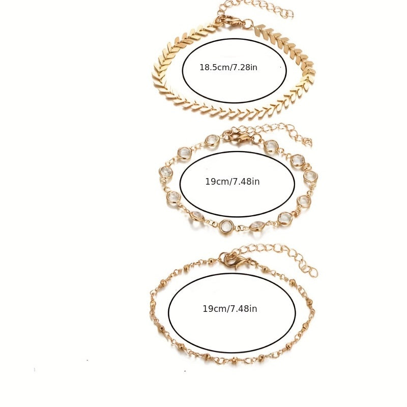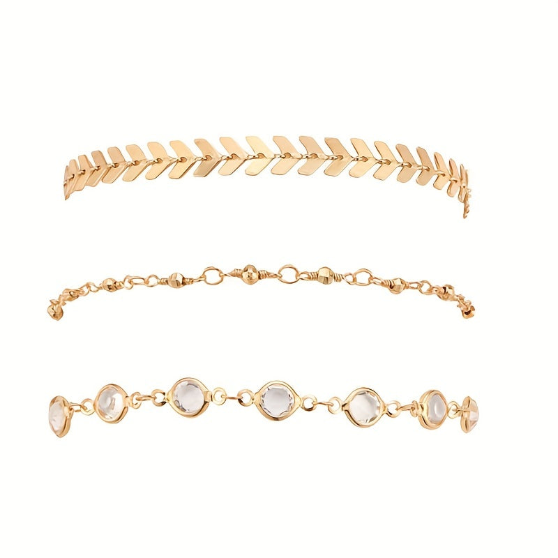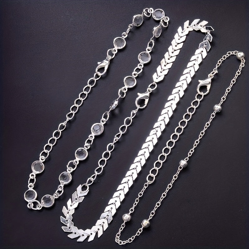 Elevate your style with this set of three layers anklets designed for women. These stackable ankle bracelets add a touch of elegance and charm to your outfits.