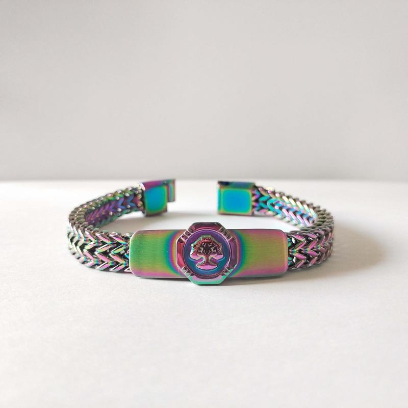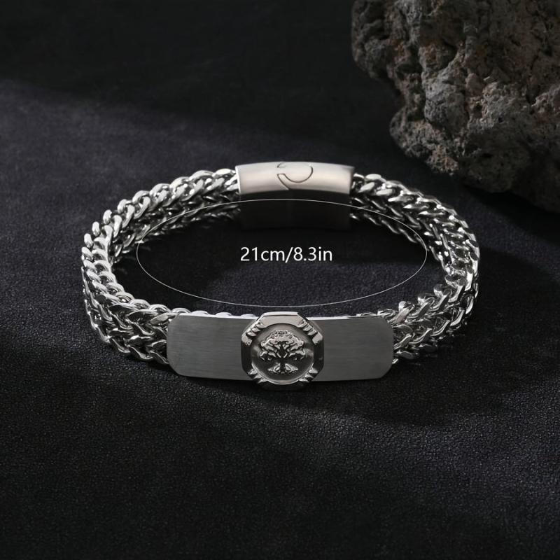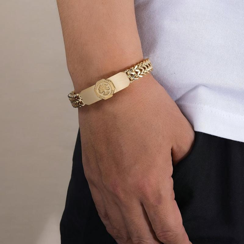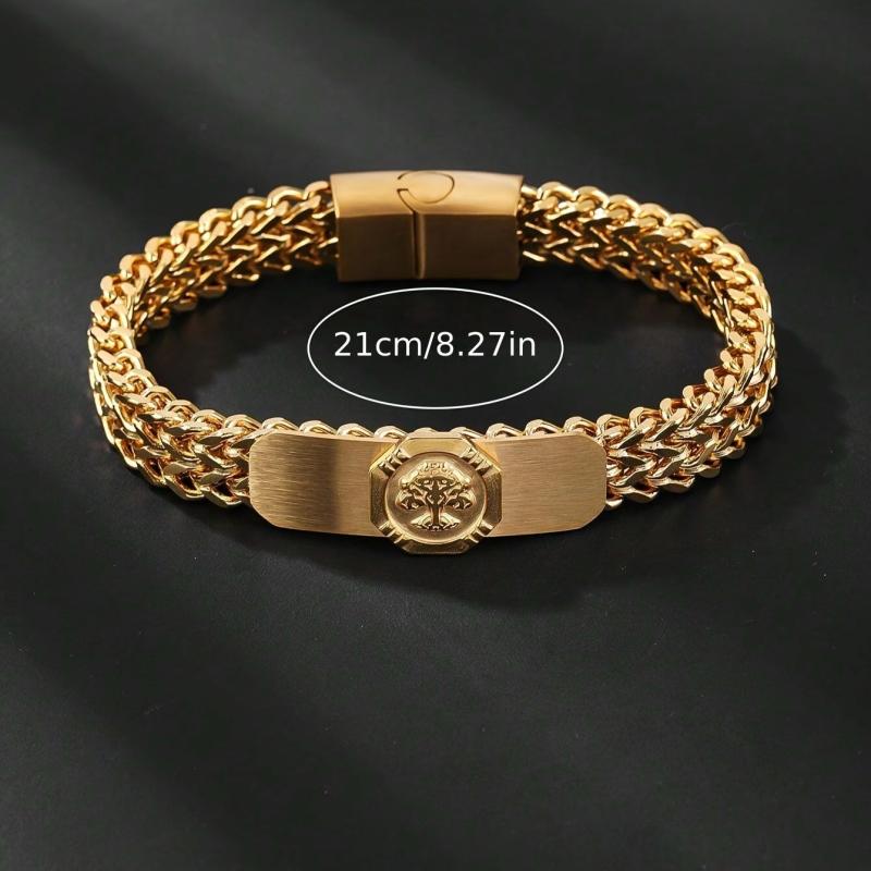This stylish bracelet is made of 304 stainless steel with a tree design. It is golden plated and features magnetic closure. Perfect gift for couples on Valentine's Day.