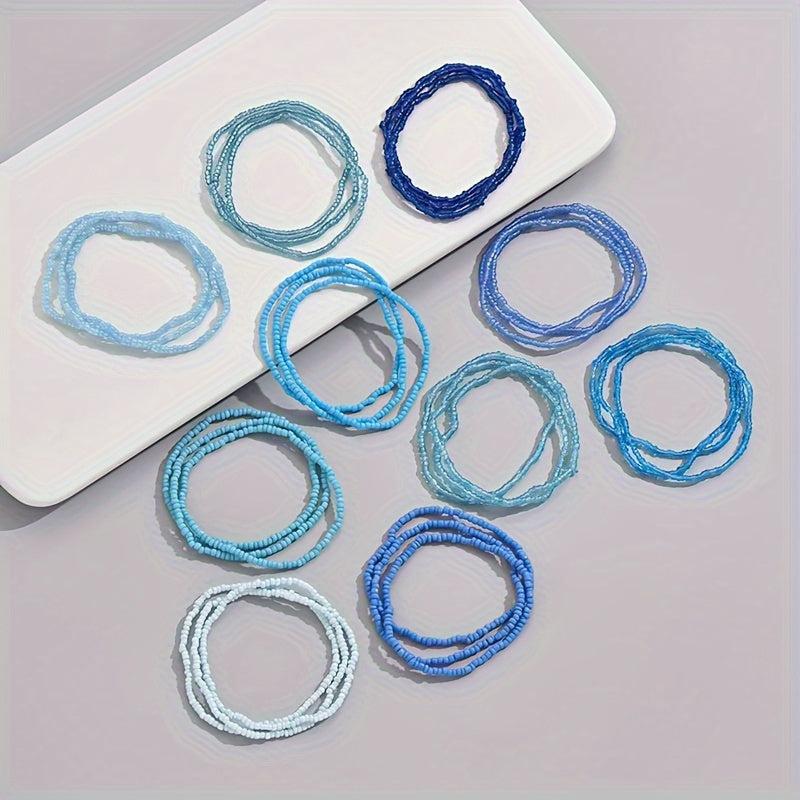 Elevate your wrist game with these stylish multilayer glass bead bracelets. Adjustable elastic makes them comfortable to wear. Perfect for daily wear or as a gift.