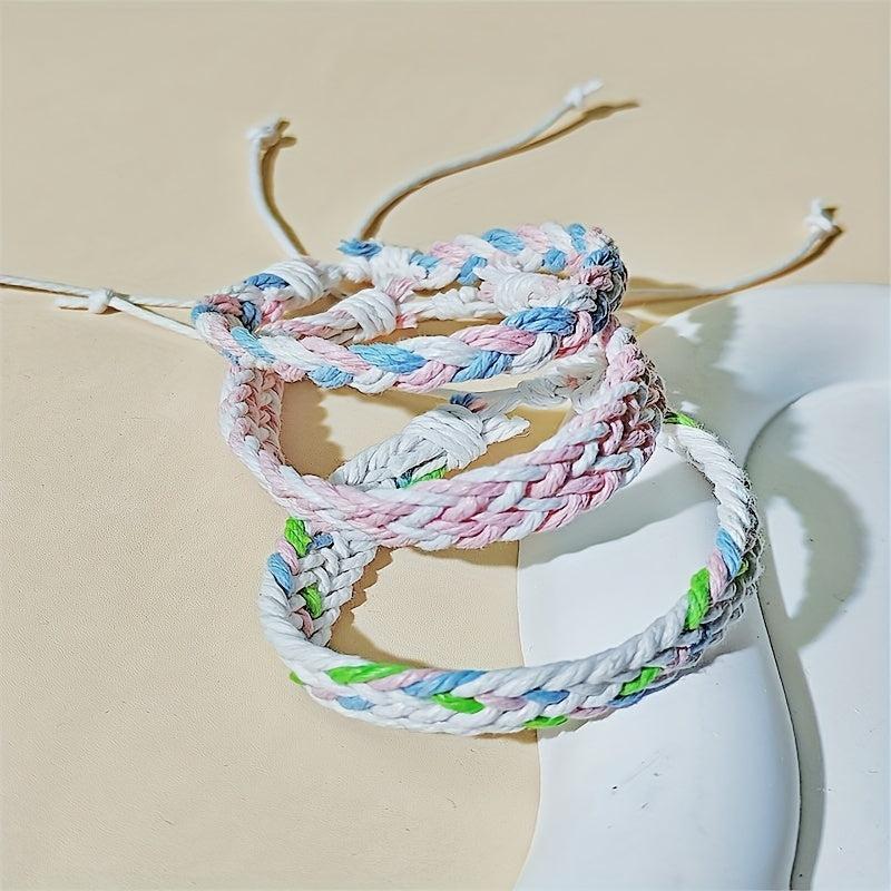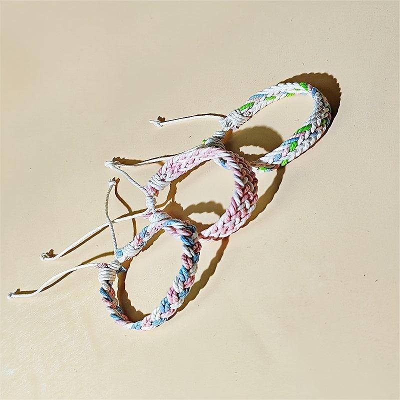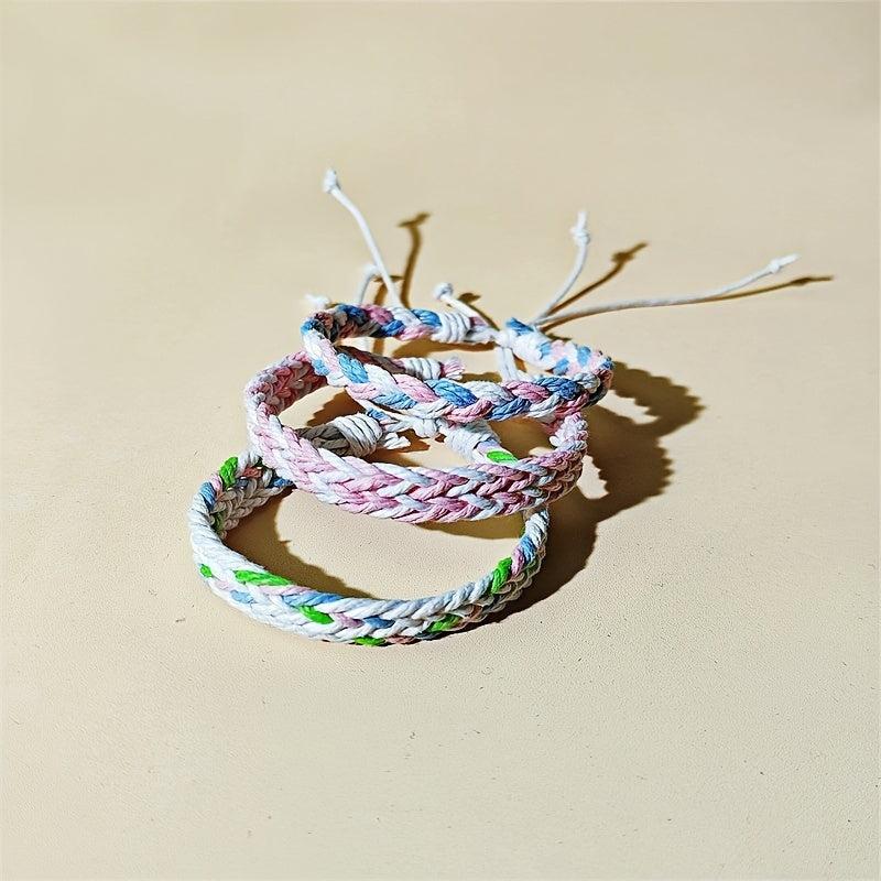 Elevate your daily style with this 3-piece boho handwoven bracelet set. Made with high-quality weave material, these bracelets are perfect for all seasons.