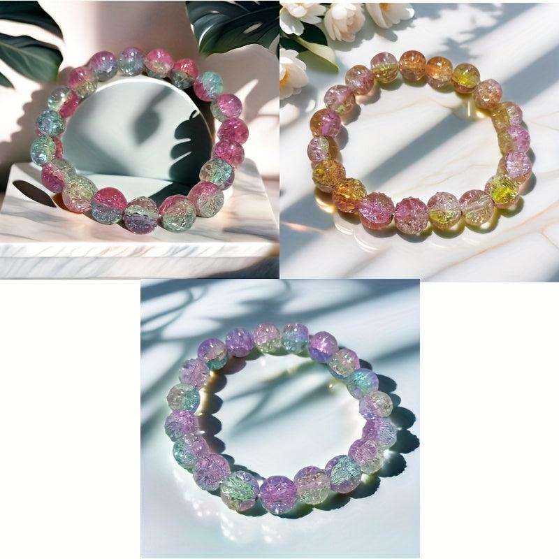 Capture the essence of summer with this set of 3 colorful glass bead bracelets. Perfect for daily wear or gifting, these vibrant bracelets add a touch of Boho vacation style to any outfit.