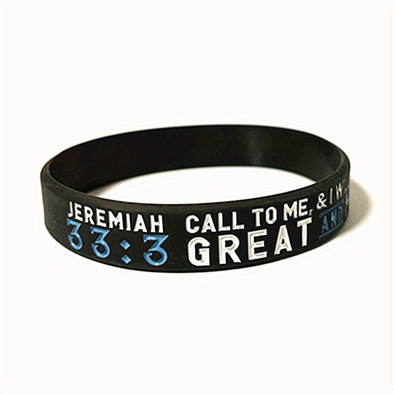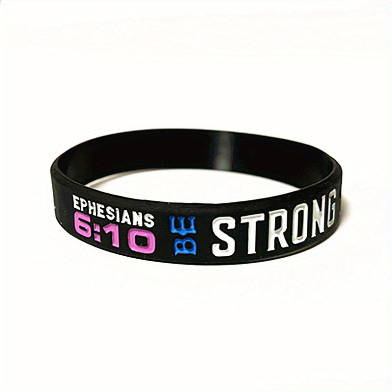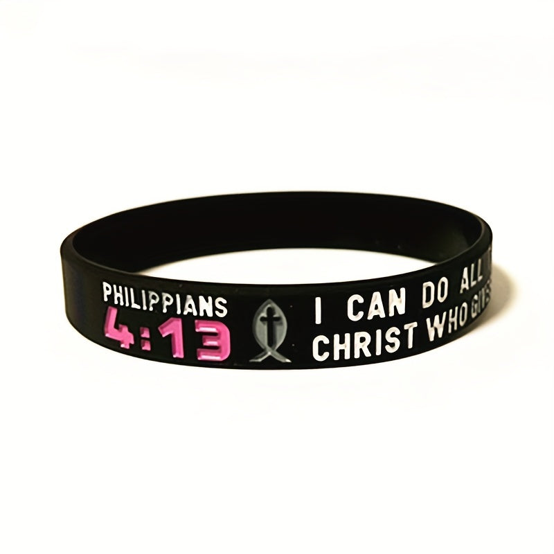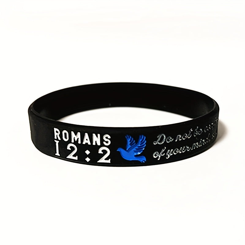 Set of 4 silicone wristbands featuring inspirational Bible verses from Ephesians, Jeremiah, Philippians, and Romans. Perfect for daily wear or gifting.