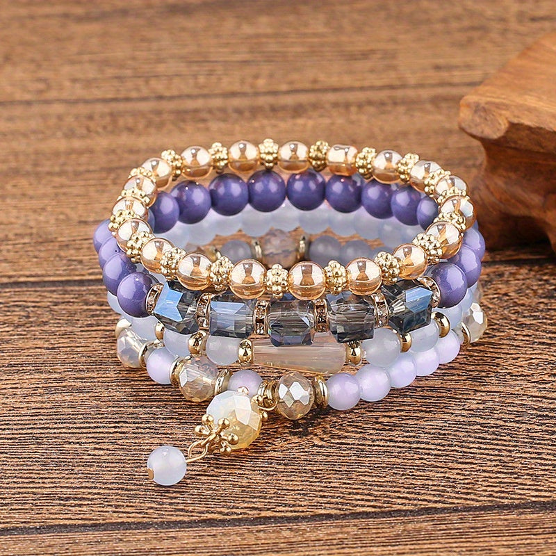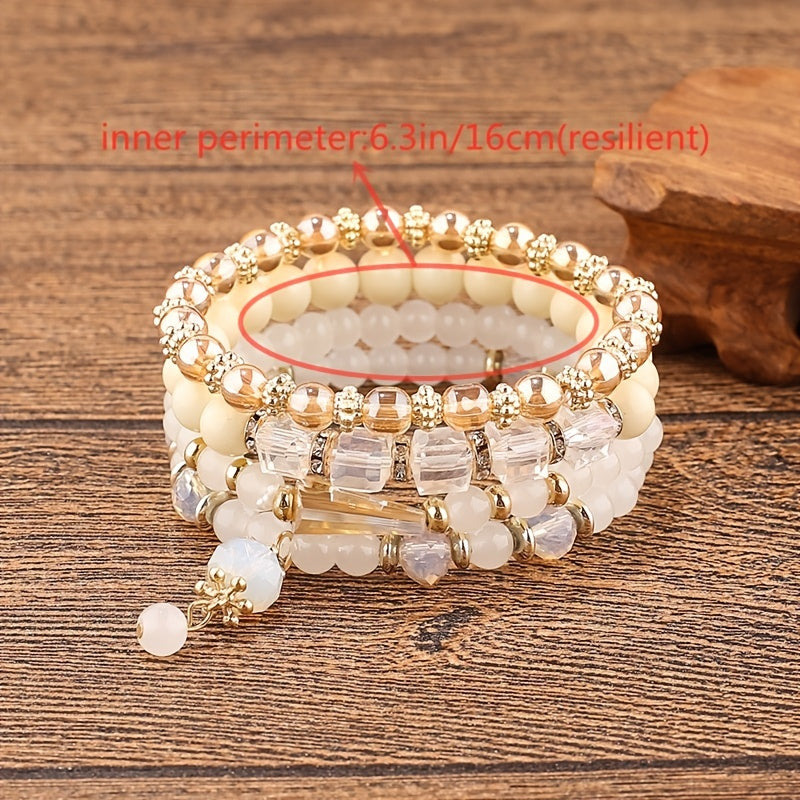 This set includes 4 bracelets made of natural stone and crystal beads. The elastic design allows for a comfortable fit on any wrist size.