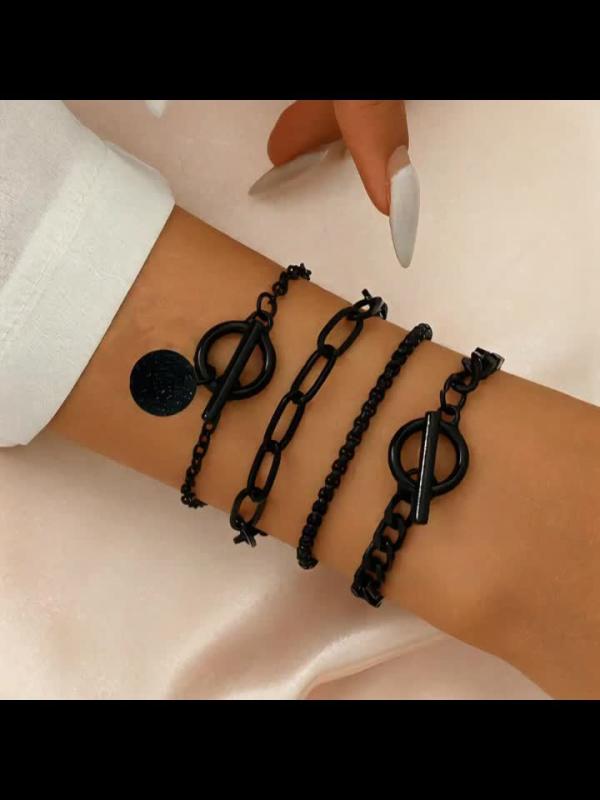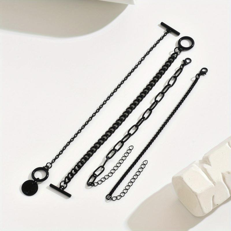 Fashionable minimalist bracelet set with a stackable design and T bar clasp. Made of iron material in a vintage style, suitable for all seasons and versatile for daily wear or vacation.