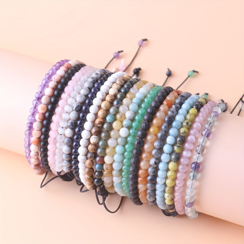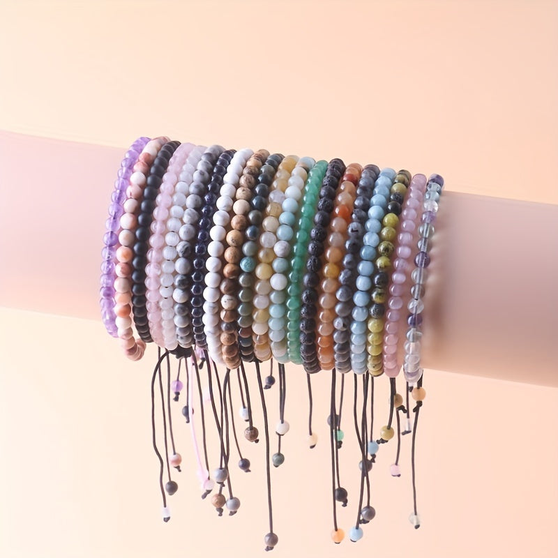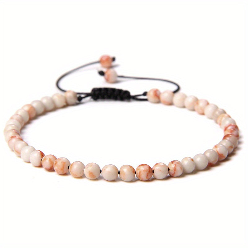 This 4mm beaded bracelet is a perfect accessory for yoga enthusiasts and women who appreciate delicate jewelry. It is adjustable to fit various wrist sizes and adds a touch of elegance to any outfit.