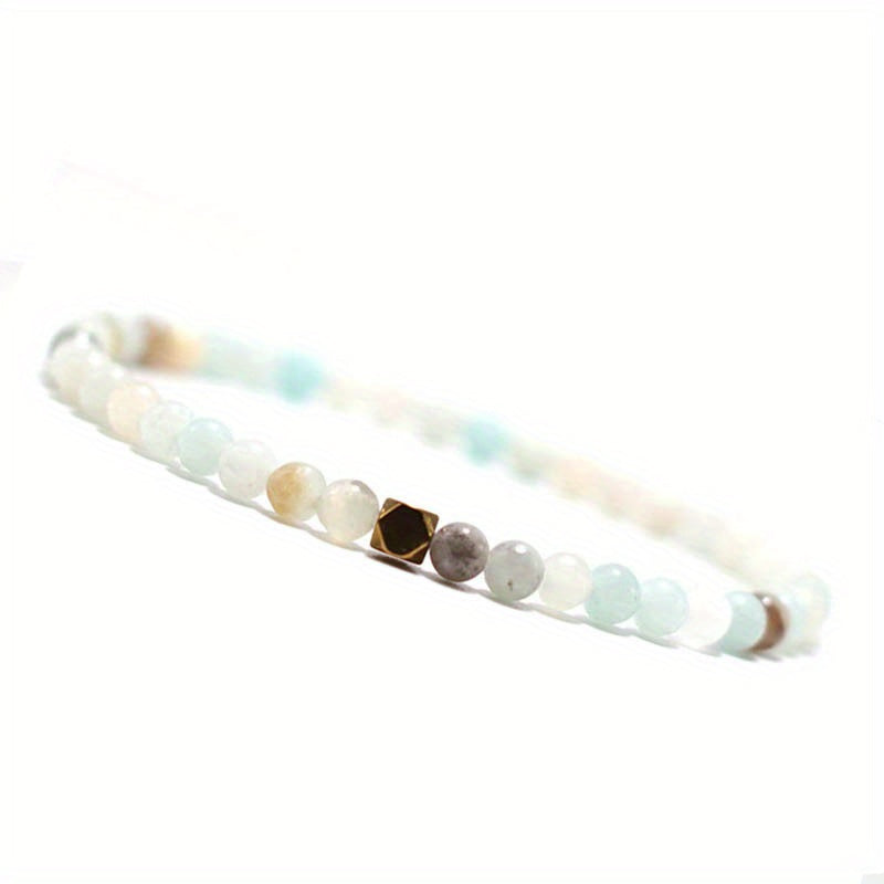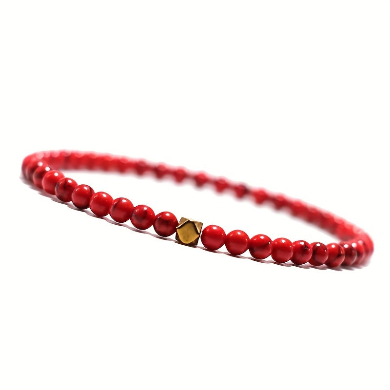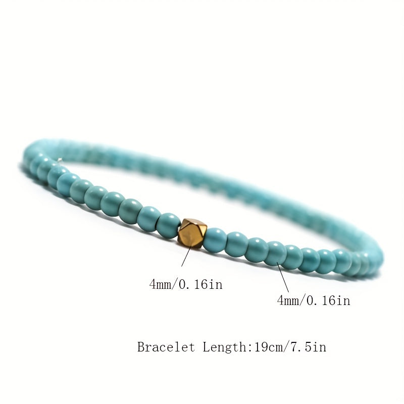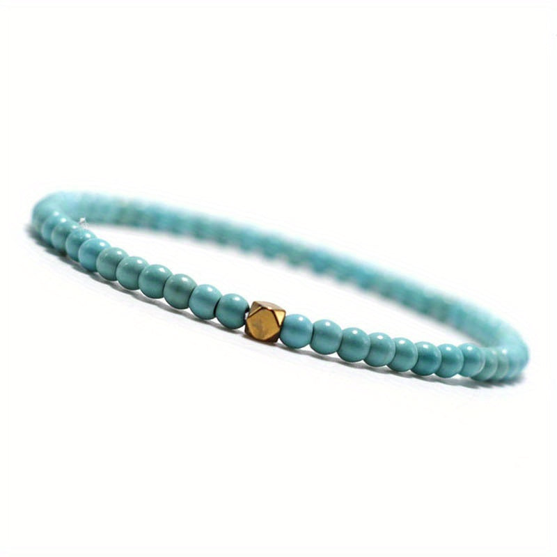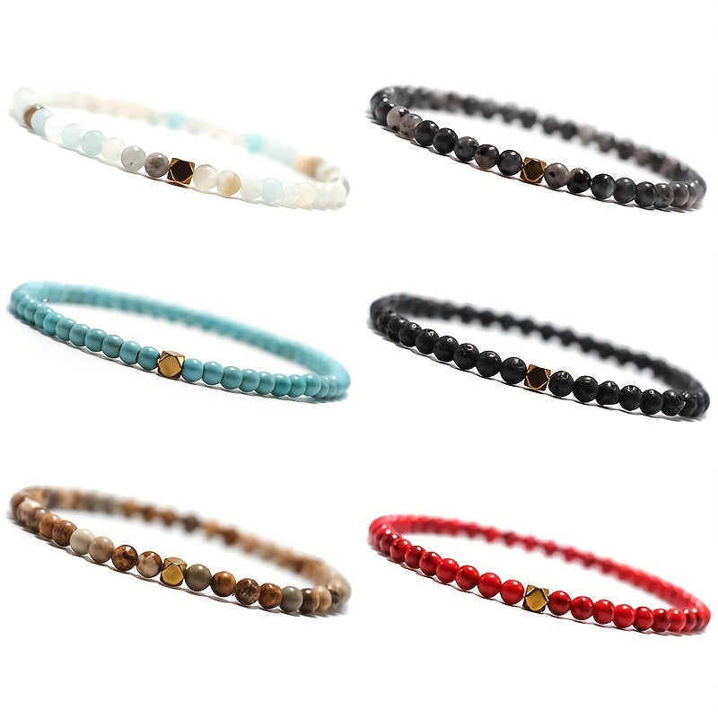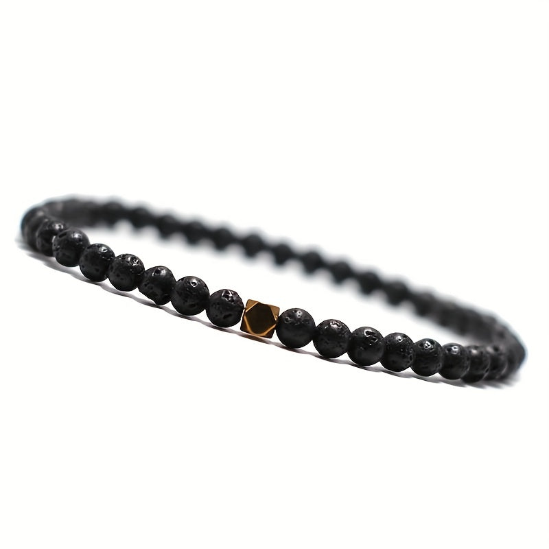 This bracelet features natural stone turquoise and volcanic rock beads with a flower design. It is elastic and perfect for men's style.