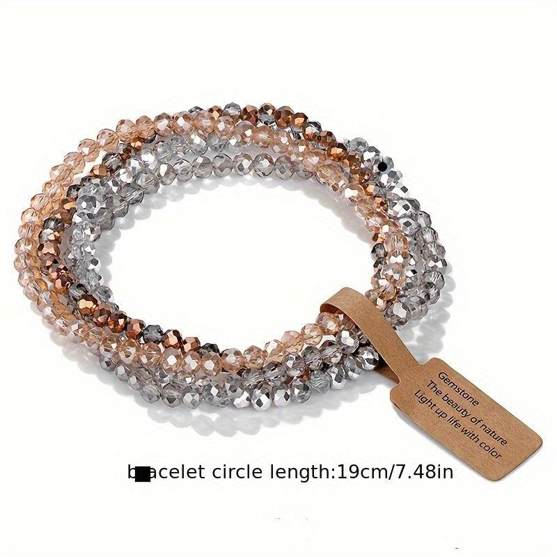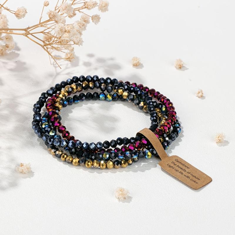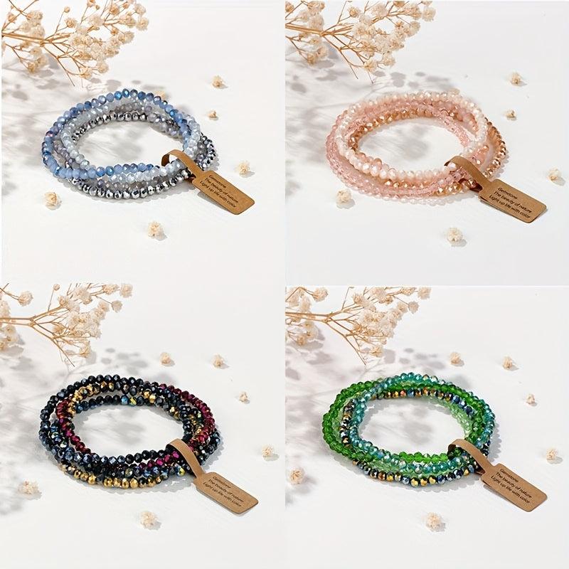 Add a pop of color and sparkle to your outfit with this set of 4 bohemian style crystal beaded stretch bracelets. Each bracelet features a mix of bright colors to complement any look.