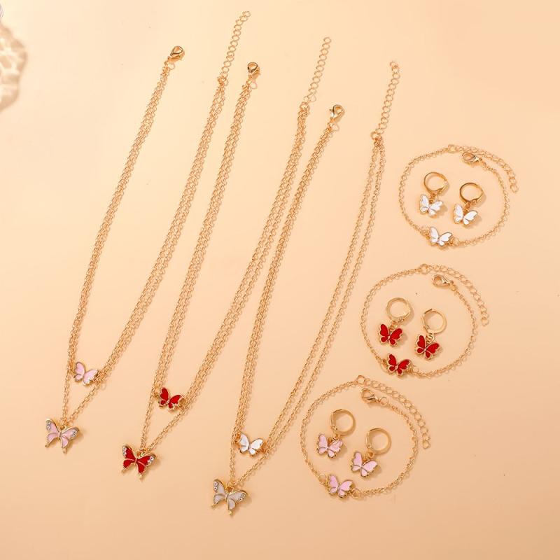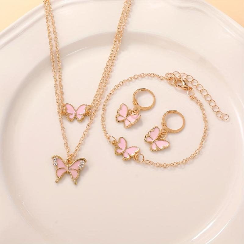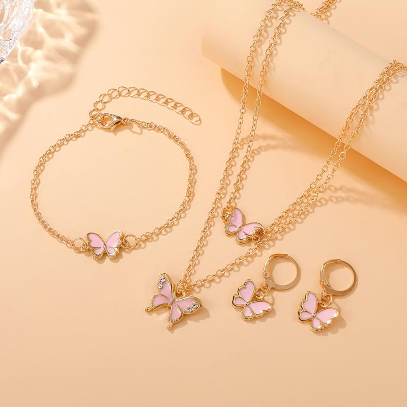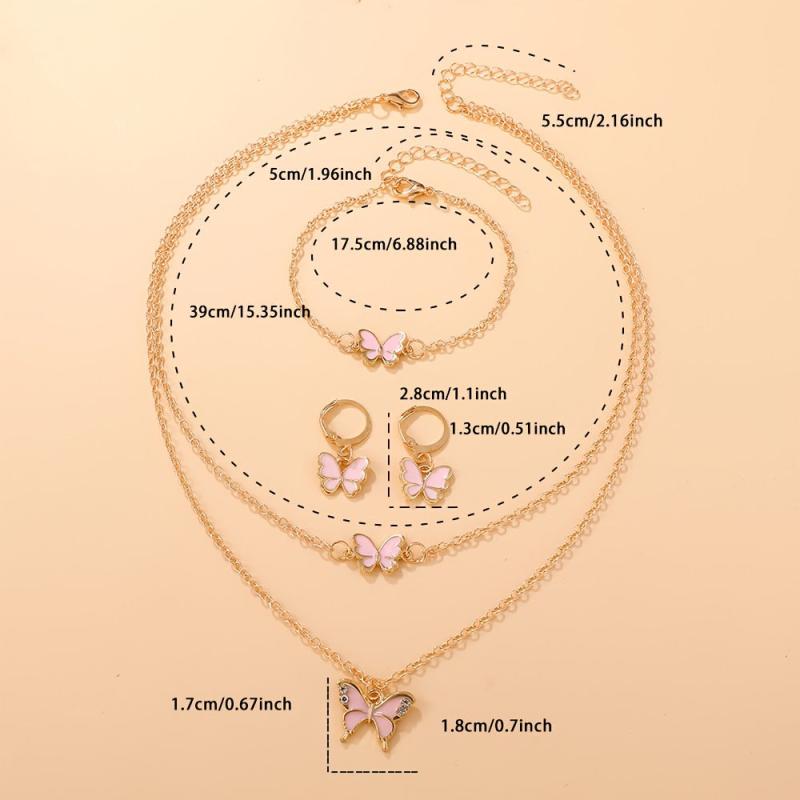 Elevate your style with this 4-piece bohemian set featuring double layered design and butterfly charms.