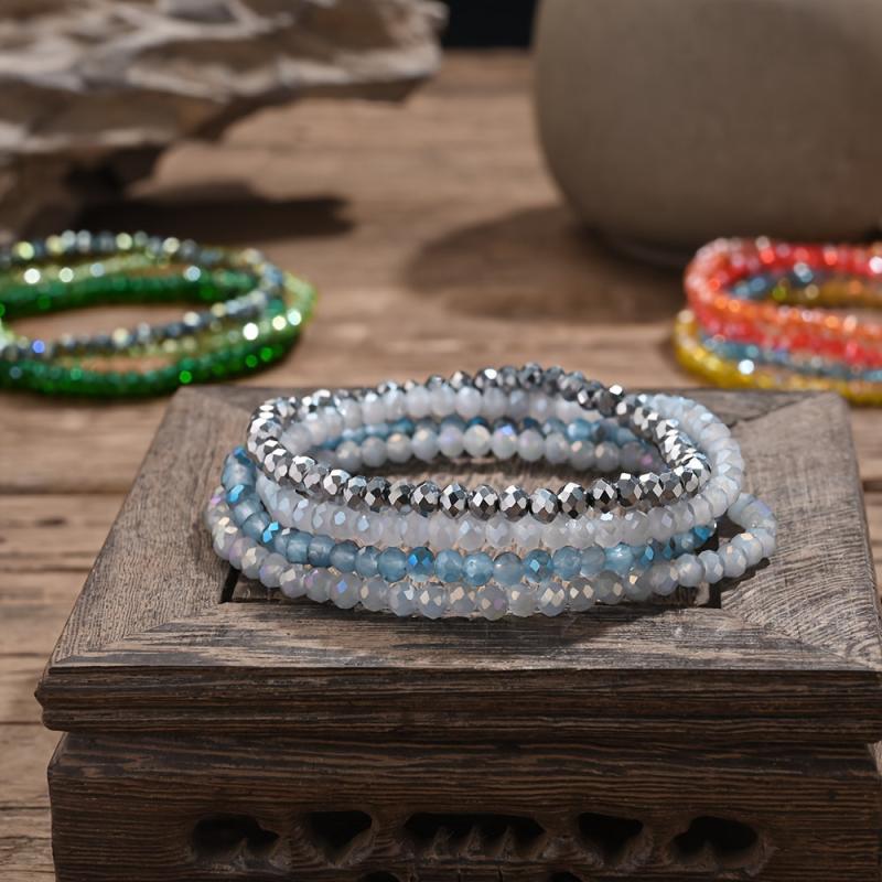 This 4-piece set of small fresh elastic string bracelets is the perfect gift for your bestie or to wear to parties. These bracelets are stylish and comfortable, adding a touch of elegance to any outfit.