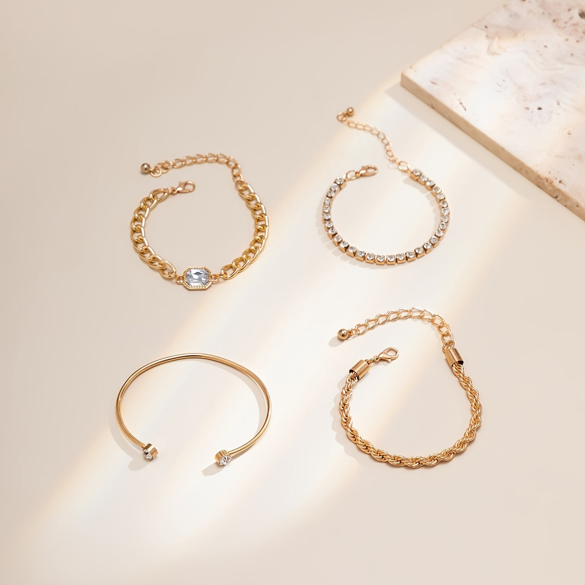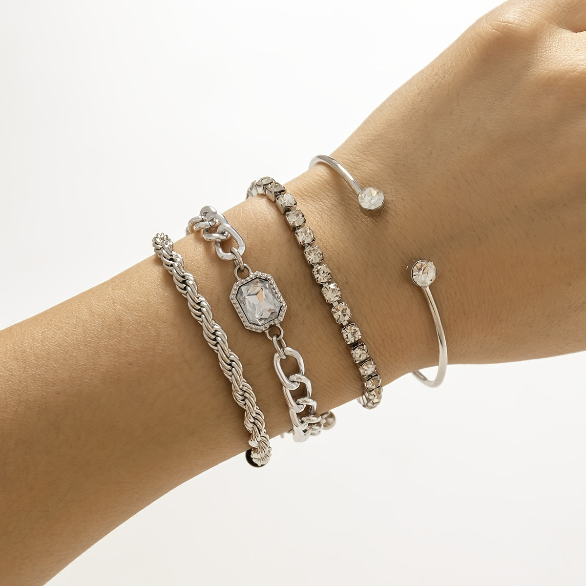 Add a touch of vintage charm to your look with this set of 4 dinosaur-themed open bracelets. Perfect for holiday style and a unique accessory for any outfit.