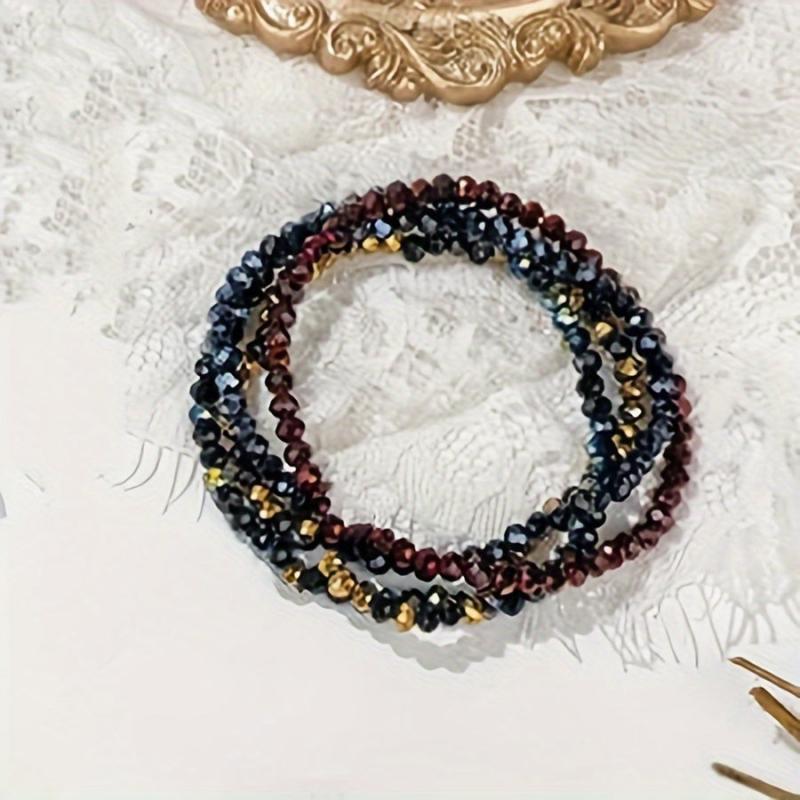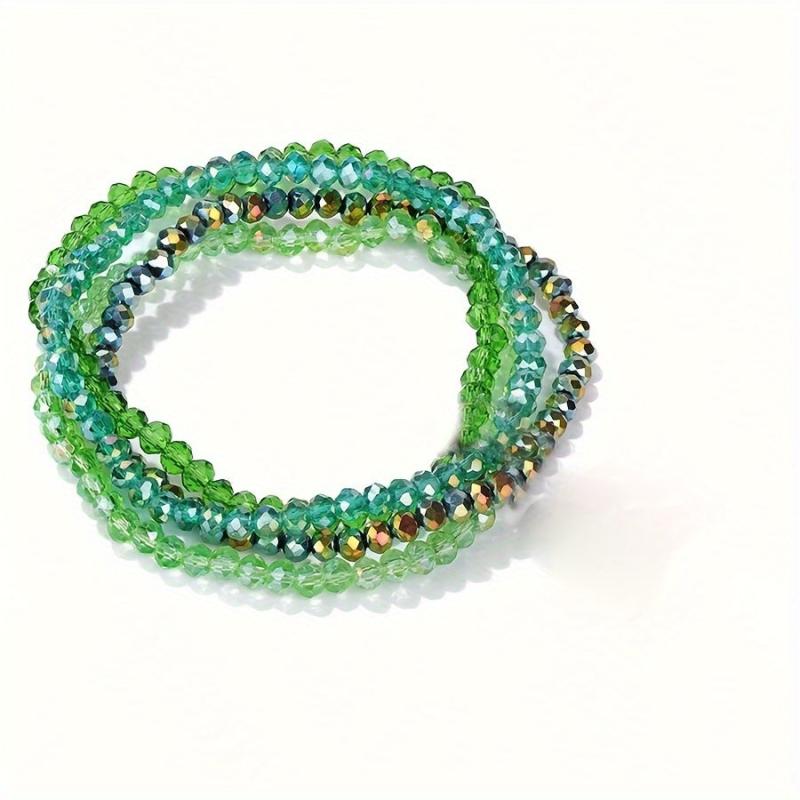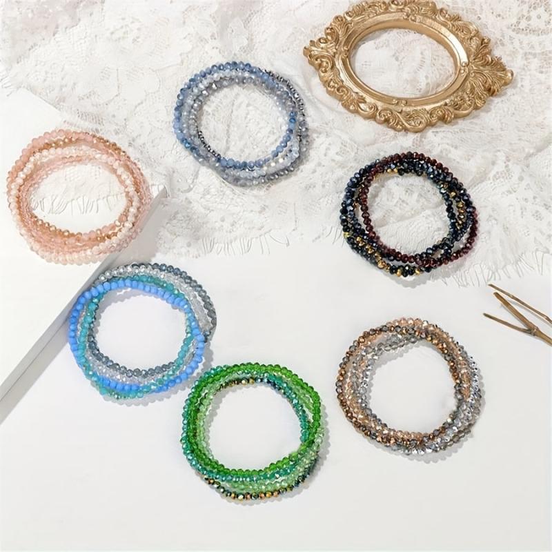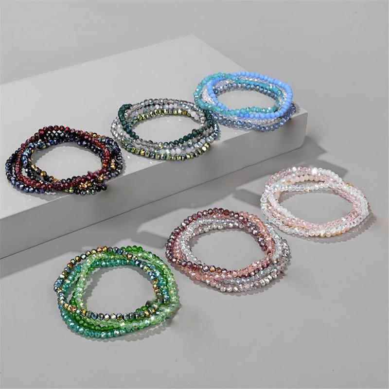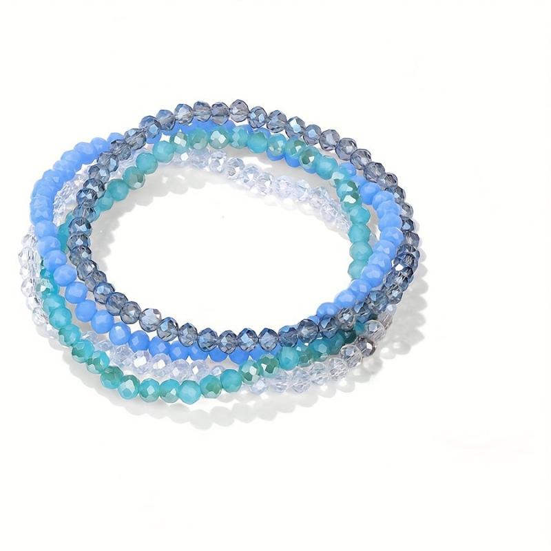Enhance your summer style with this 4-piece bracelet set. Casual and versatile, perfect for vacations. Features gradient beads in random colors.