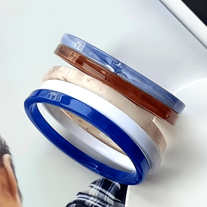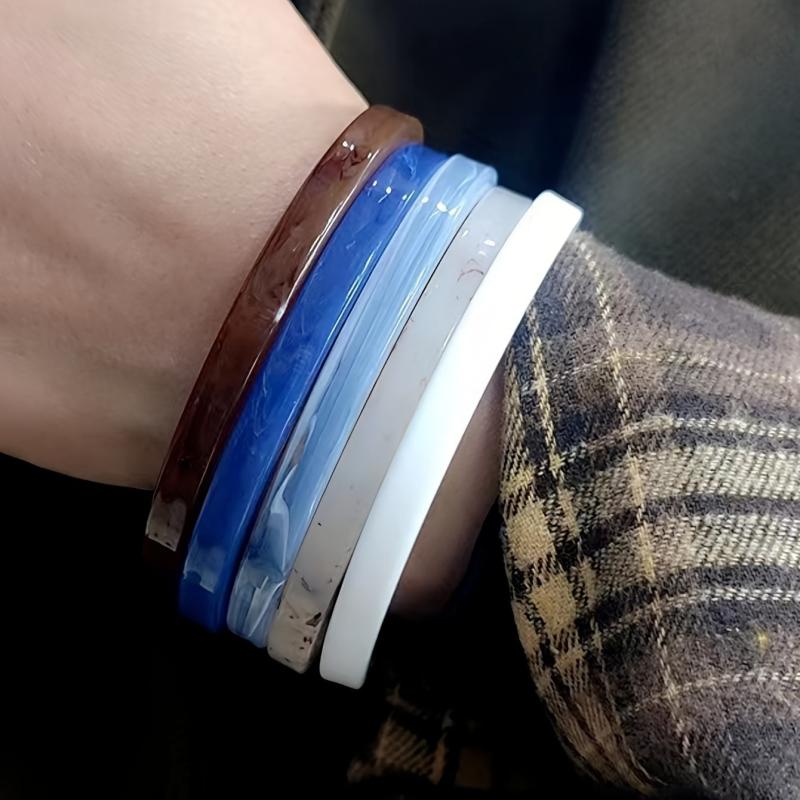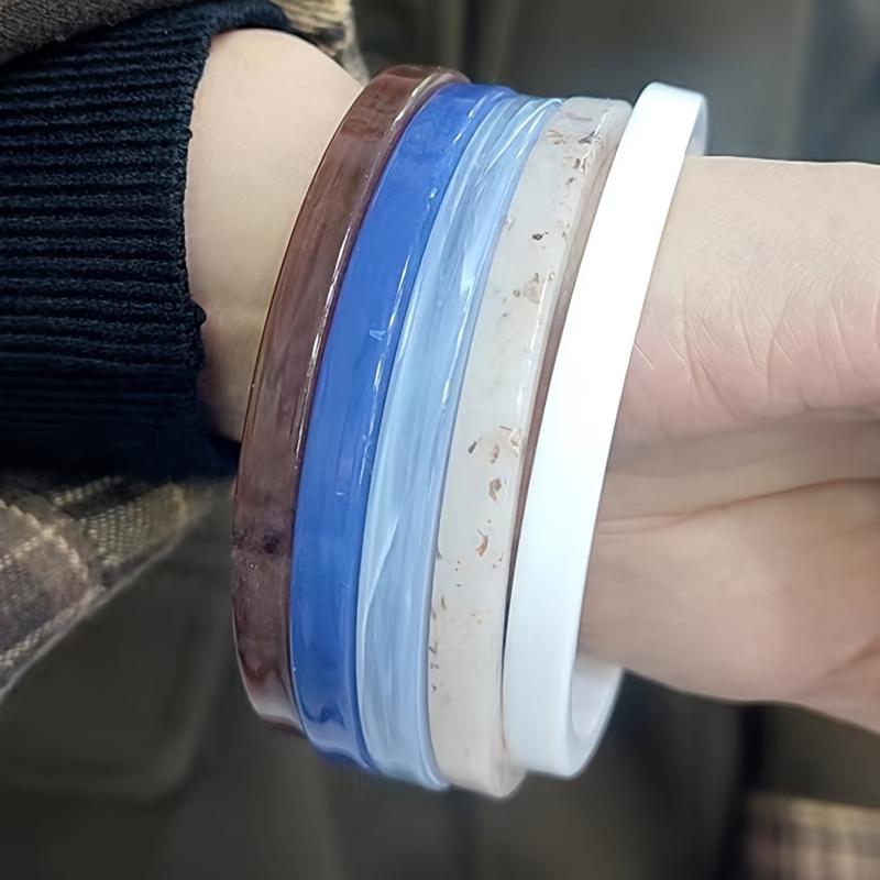 This 5 pack candy resin bracelet set offers a fresh, fashionable, and versatile girl style. The bracelets feature a jelly vintage design with solid round and sweet middle eastern bohemian style elements. Perfect for daily wear.