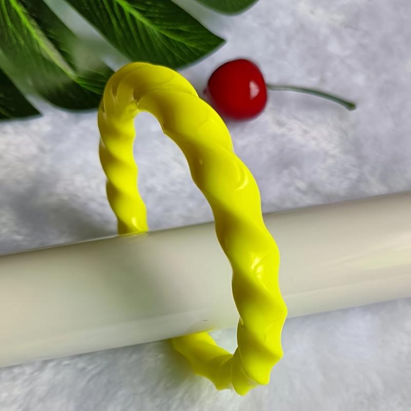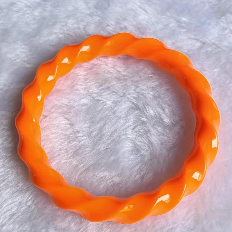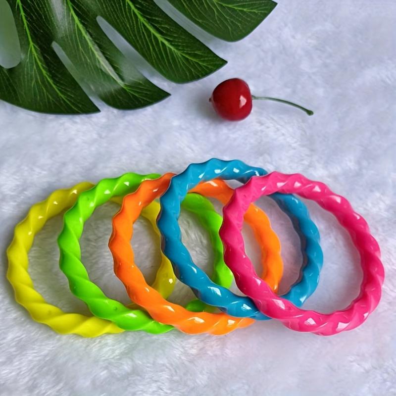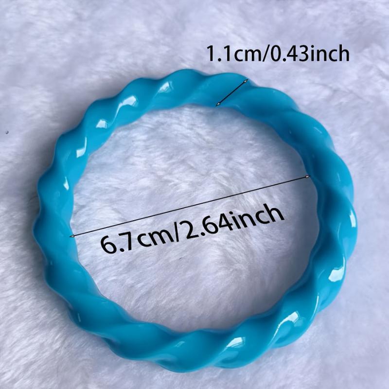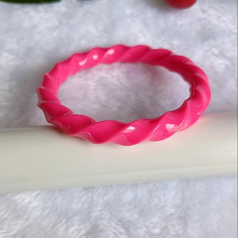 This set includes five vibrant fluorescent twist bracelets made of resin acrylic circles. Add a pop of color to your outfit with these eye-catching bracelets.