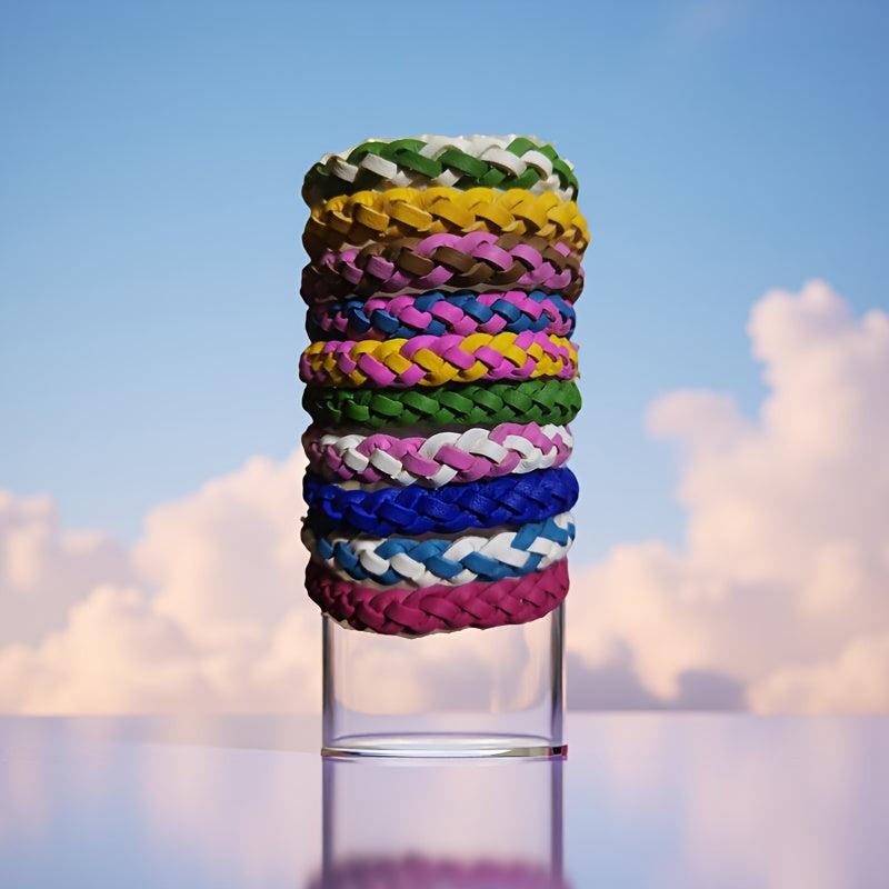 Add a pop of color to your travel or casual attire with this set of 5 adjustable braided bracelets in vibrant red, pink, yellow, and green. Perfect for couples' gifts, summer style, and stacking!