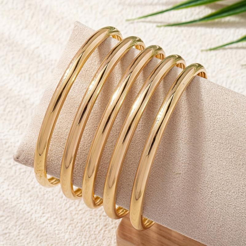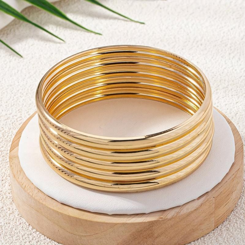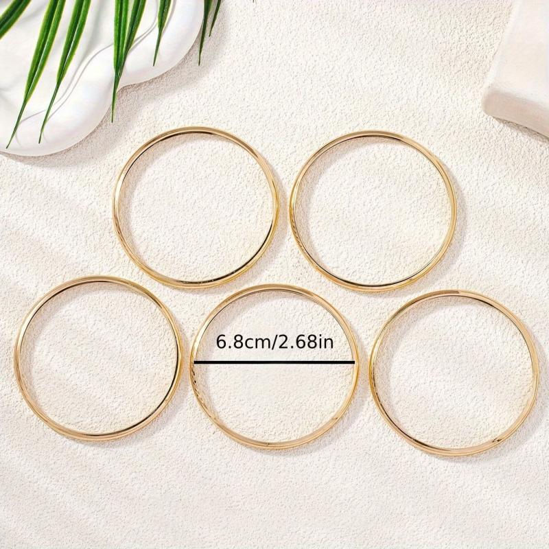 Add a touch of boho hip hop style to your look with this set of 5 golden plated bangles. Perfect for parties, dates, or as a gift for friends.
