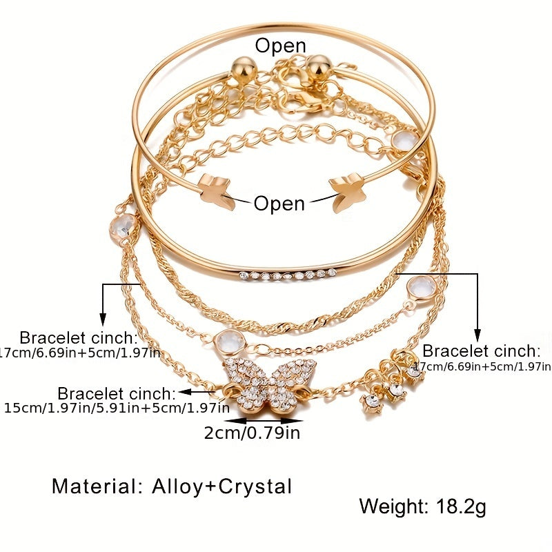Add a touch of elegance with this set of 5 butterfly rhinestone bracelets. Perfect for women and girls, these bangles feature a beautiful animal design.