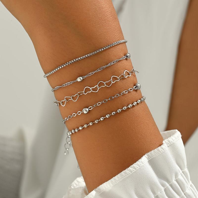 This 5pcs bracelet set is made of iron and is suitable for daily wear throughout all seasons.