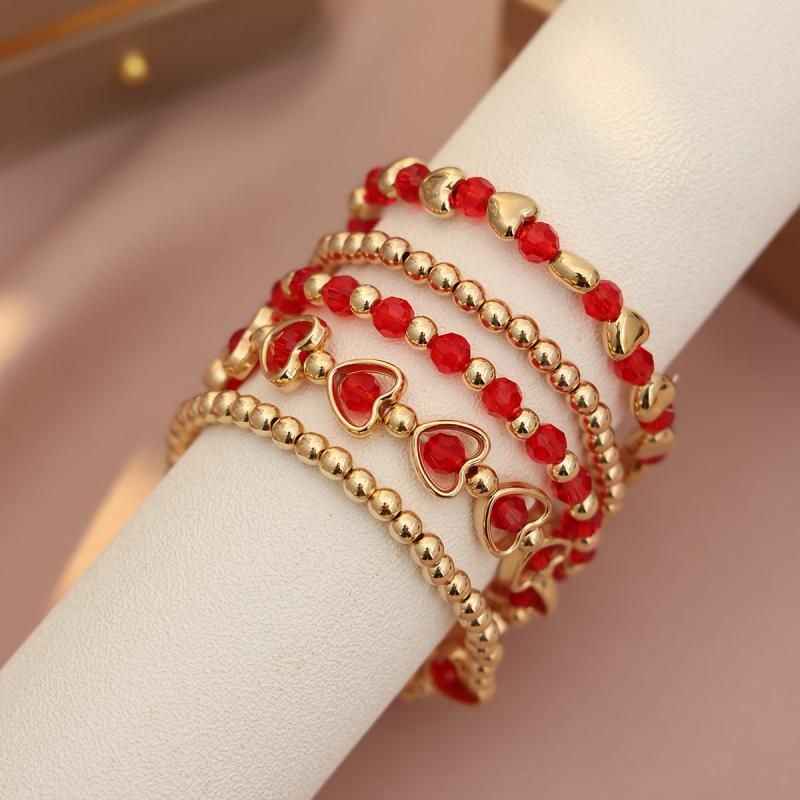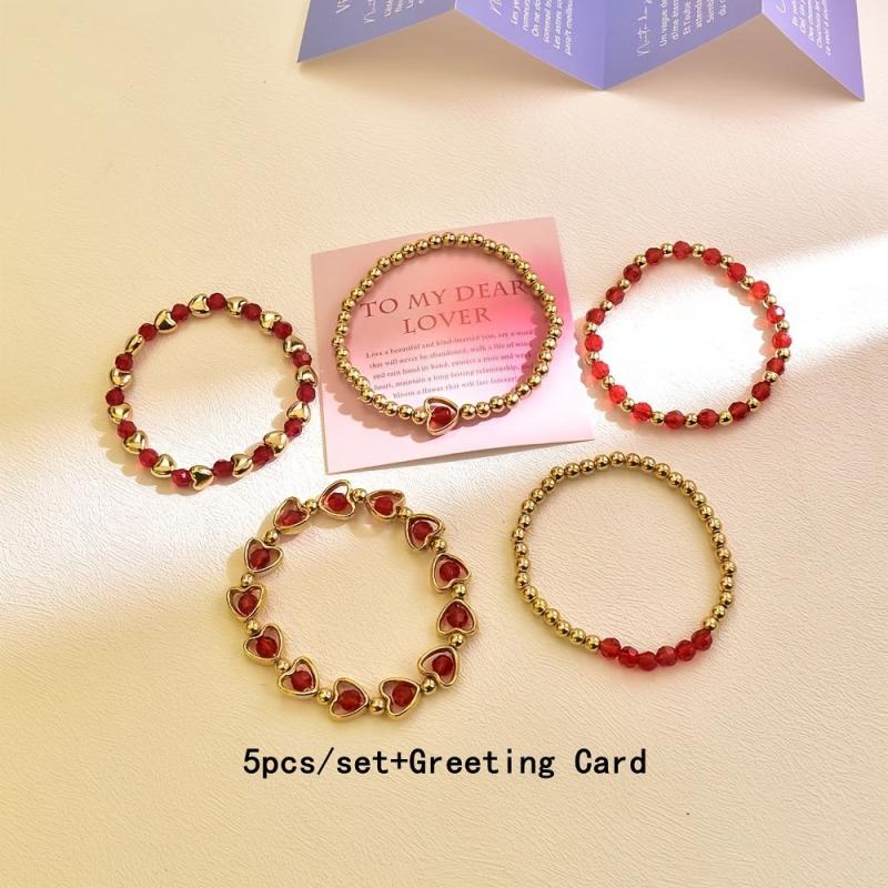 Add a pop of color to your wrist with this 5-piece red love beaded bracelet set. Perfect for daily wear, travel, or vacation.