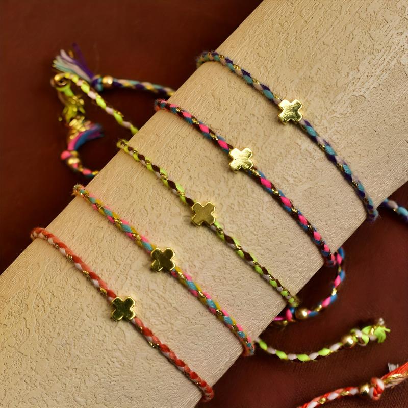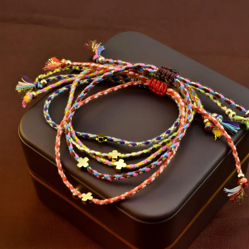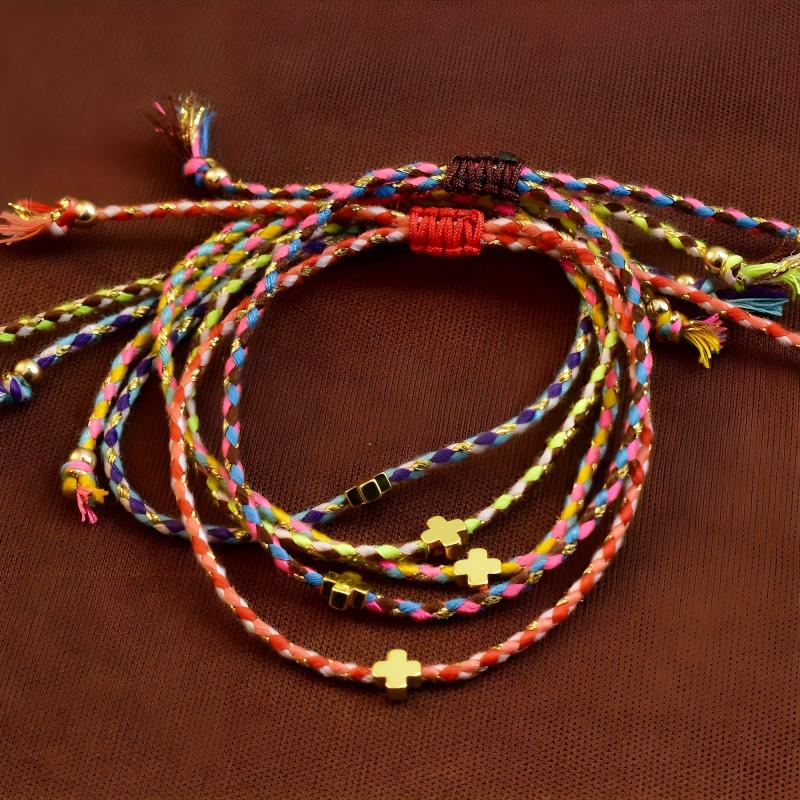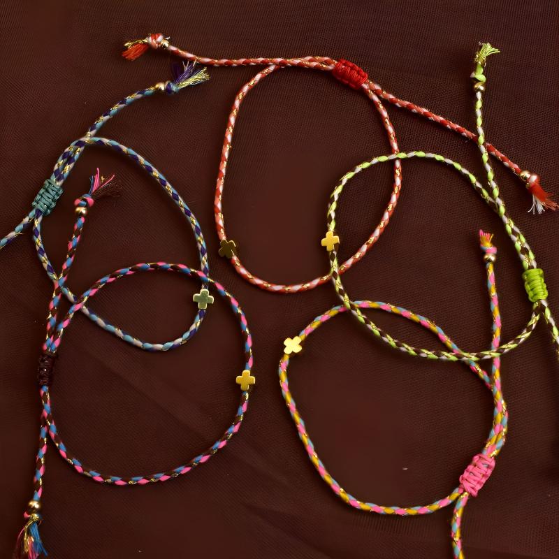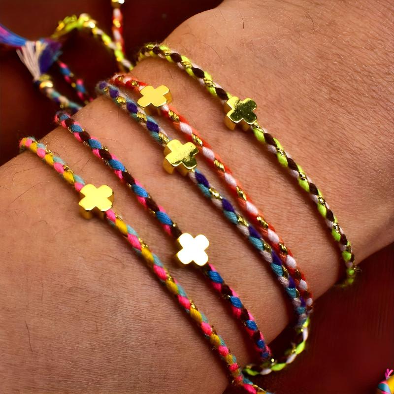 This 5-piece bracelet set features a summer-themed design with elements like dopamine, crosses, and bohemian braids. It is adjustable and suitable for daily wear, travel, and holiday occasions.